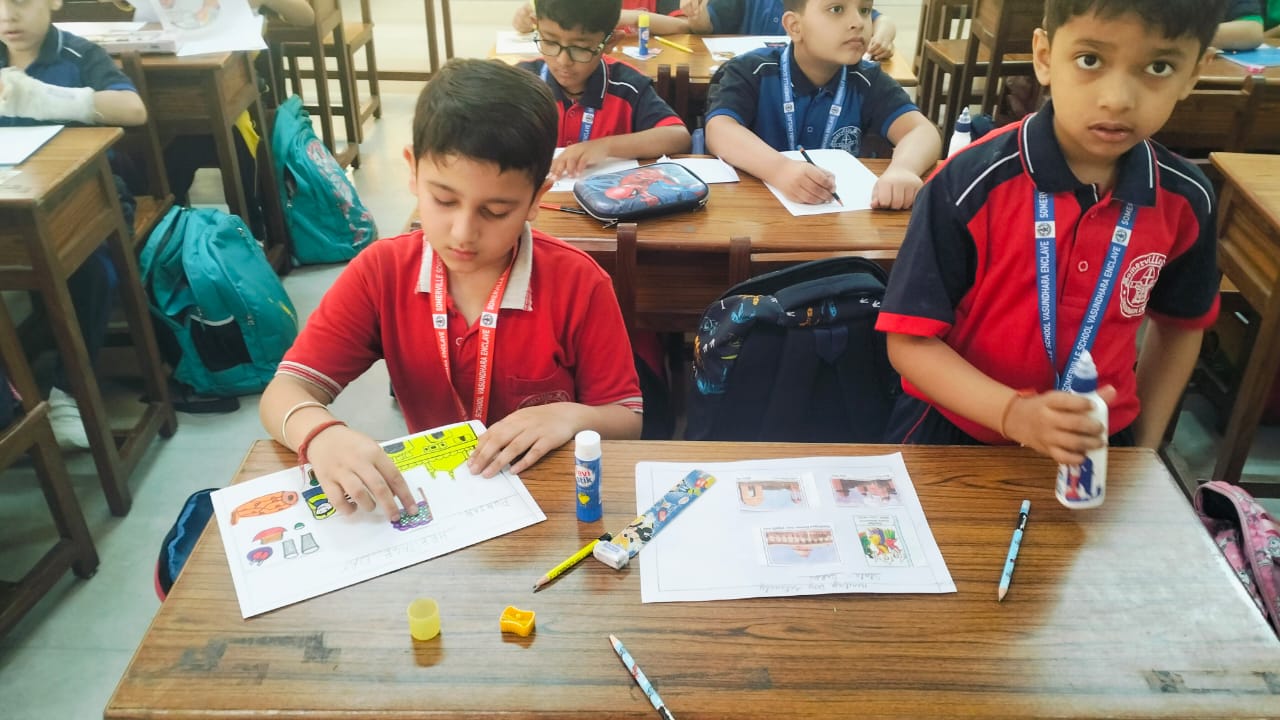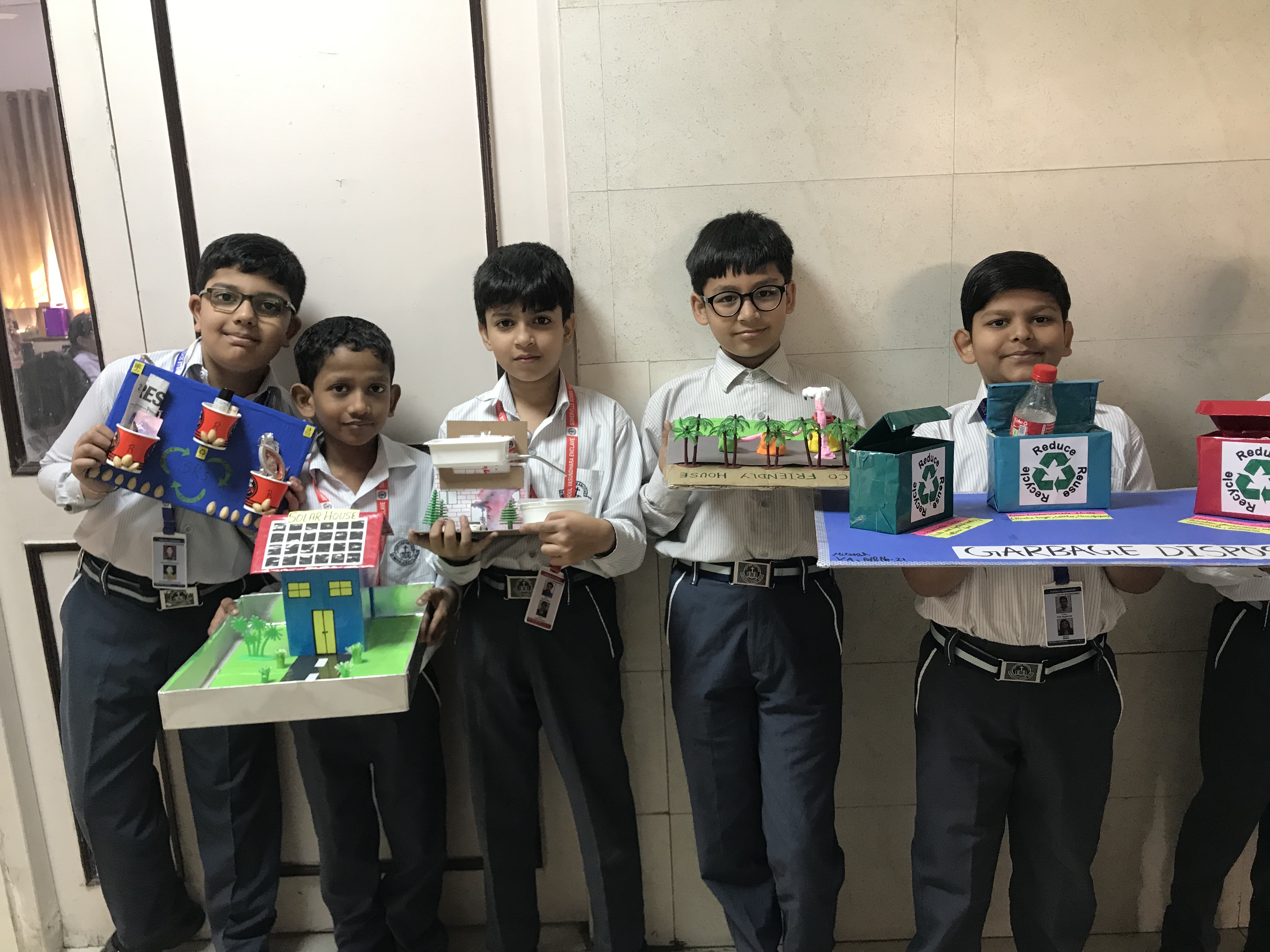 The assembly was followed by an Inter House Competition: Building a Monument using waste material for students of Classes II to V. There were 4 teams of 8 students each with 2 participants each from Classes II, III, IV and V.