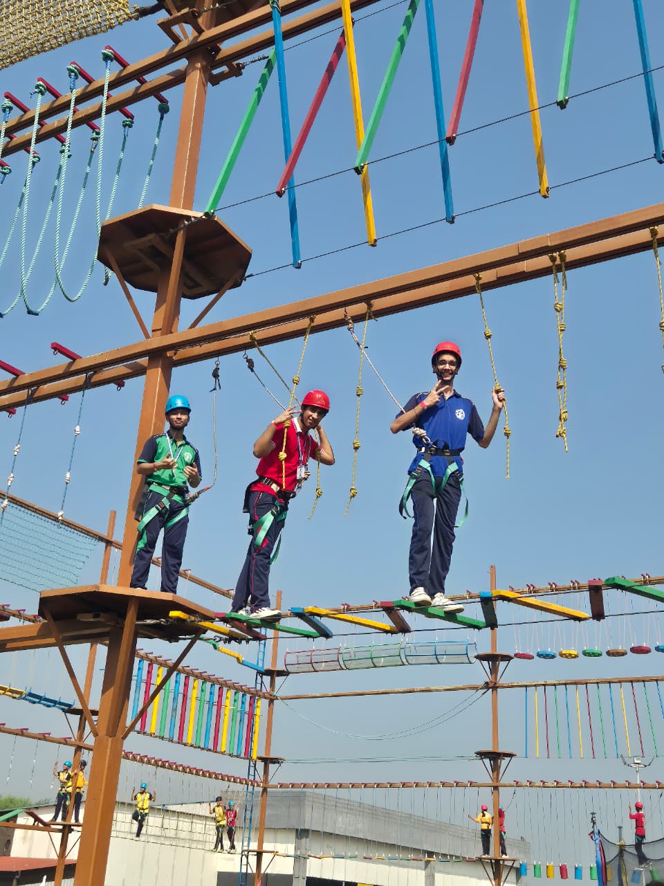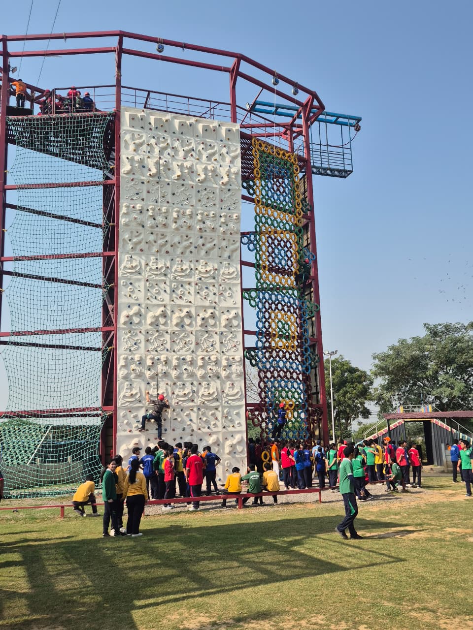 Our school organised a Day-Out Trip for the students of Classes IX, X, XI & XII on 17 th October 2025 to Elevate Gurugram, Haryana. Five hundred and twenty-nine students accompanied by their teachers went on the trip. Elevate, the Adventure Park offered a unique combination of thrill and entertainment with its theme park featuring elements inspired by Takeshi’s Castle. The students learnt important life skills like team work and time management. They thoroughly enjoyed the adventure activities including ziplining, bungee jumping and fun filled activities and rides like Slippery Giggles, Siege of Tyres, Skipping Stones, Sky Cycling, Rock Climbing Maze Mystery, Diggy-Diggy Dom etc. The enjoyable activities, unforgettable moments, unlimited supply of delicious food and beverages made it a memorable day for all.