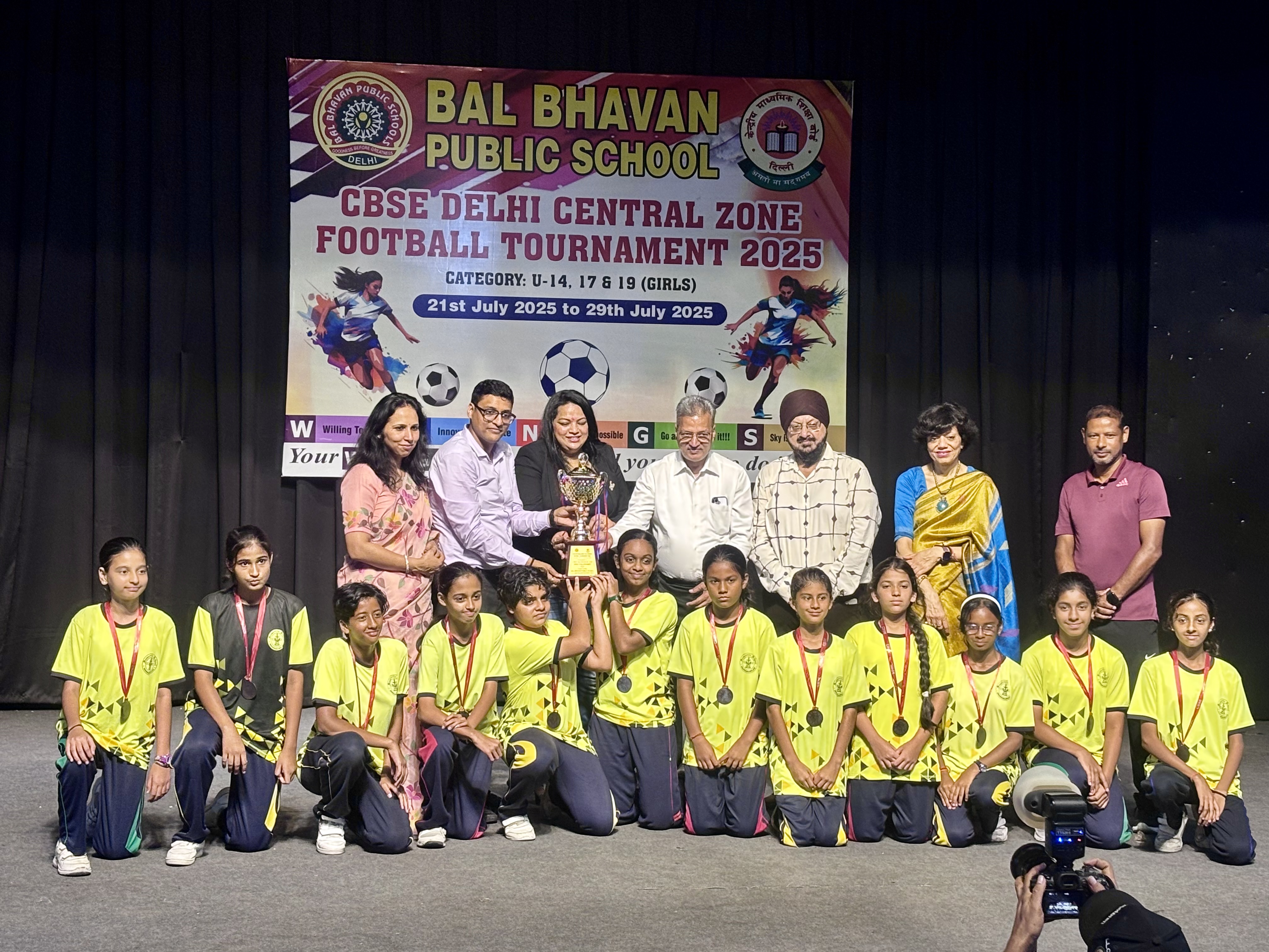 From 21st to 29th July 2025, our participated in the CBSE U-14 Girls Football Tournament held at Bal Bhavan Public School, Mayur Vihar Phase-II.
