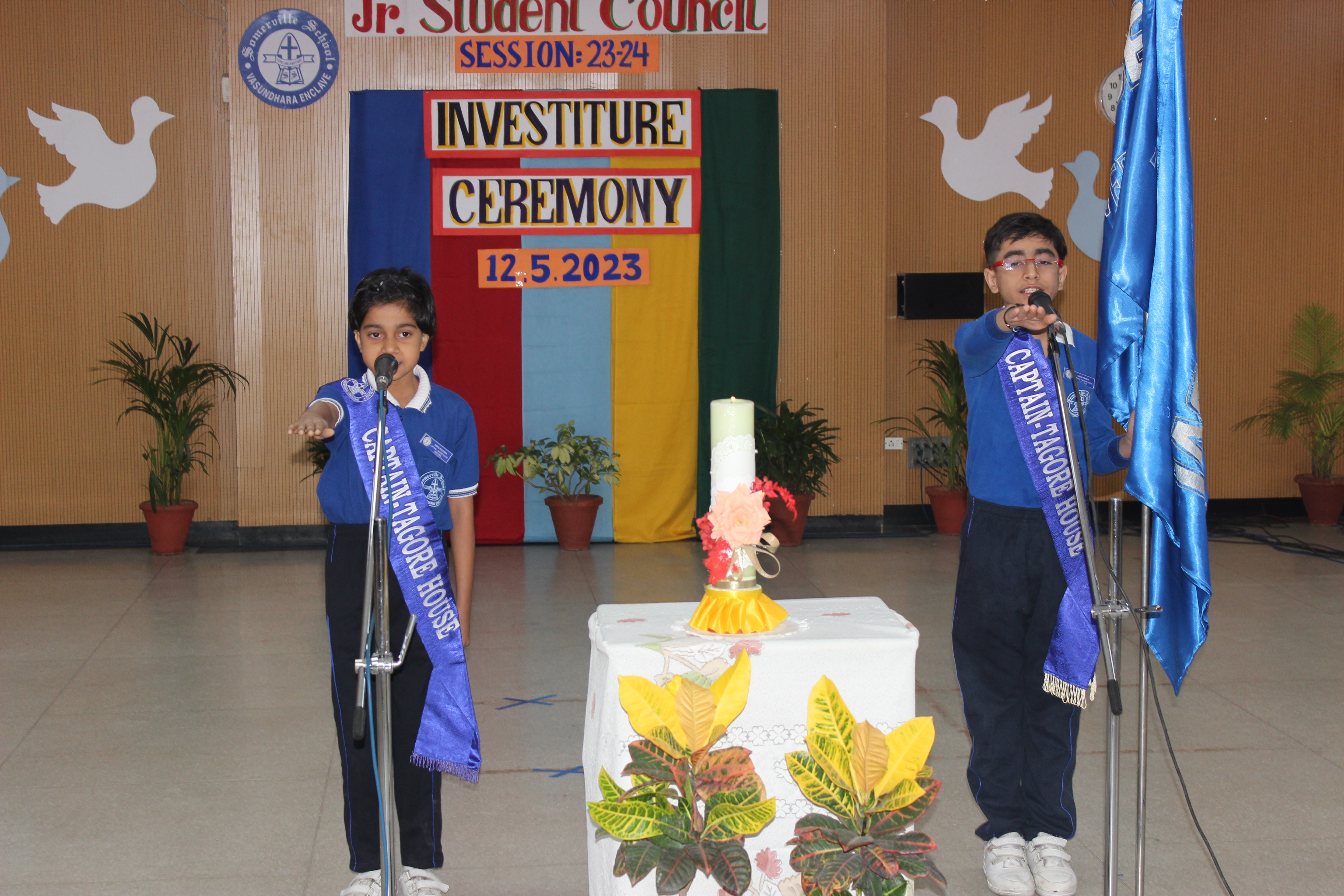 Tagore House Captain, Anjali Singh, and Vice-Captain, Ishita Arora pledged to uphold the motto of their House, “Knowledge is Power”. Ms. Suman Chopra, the House In-charge, conferred the badges and sashes and administered the oath to them.