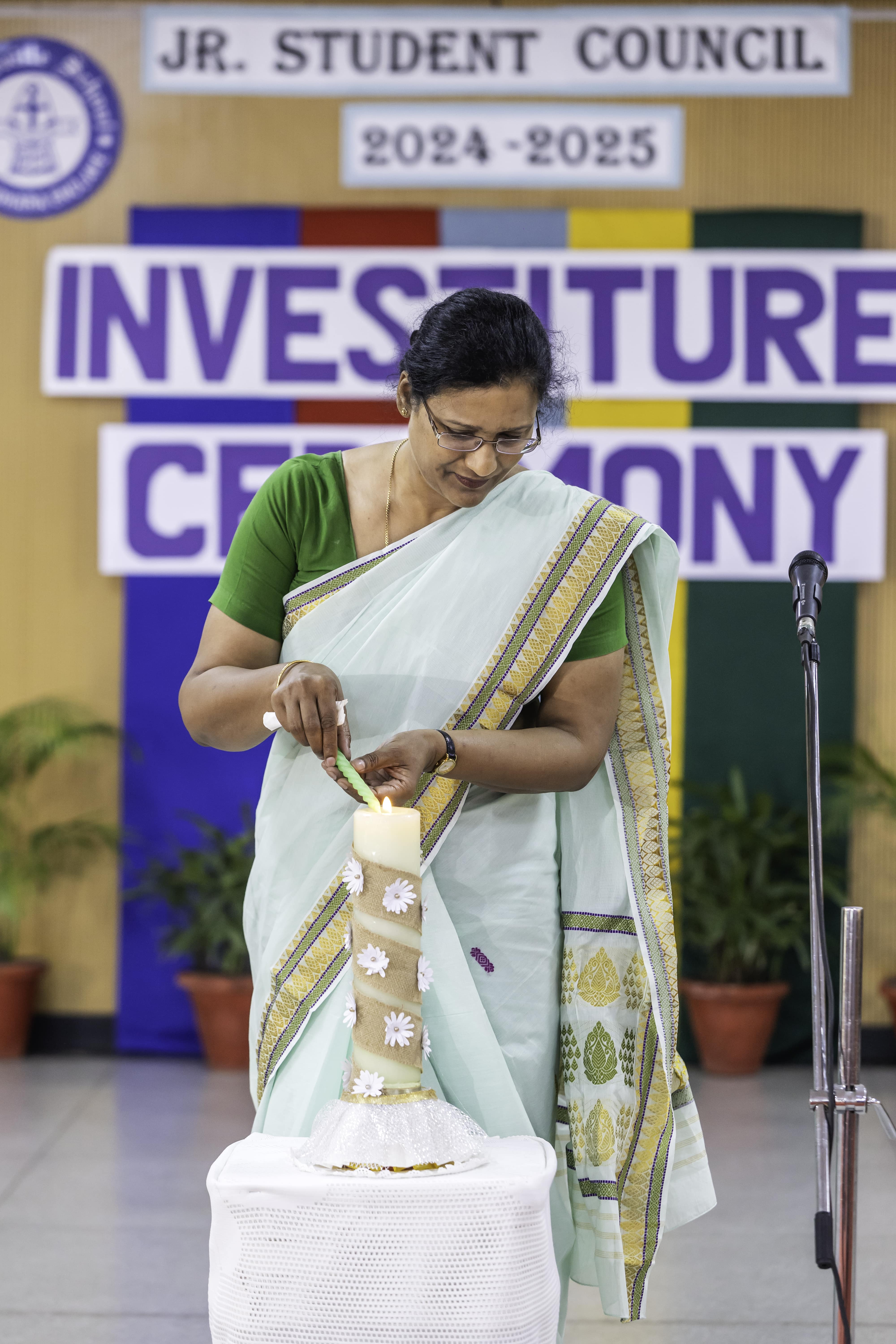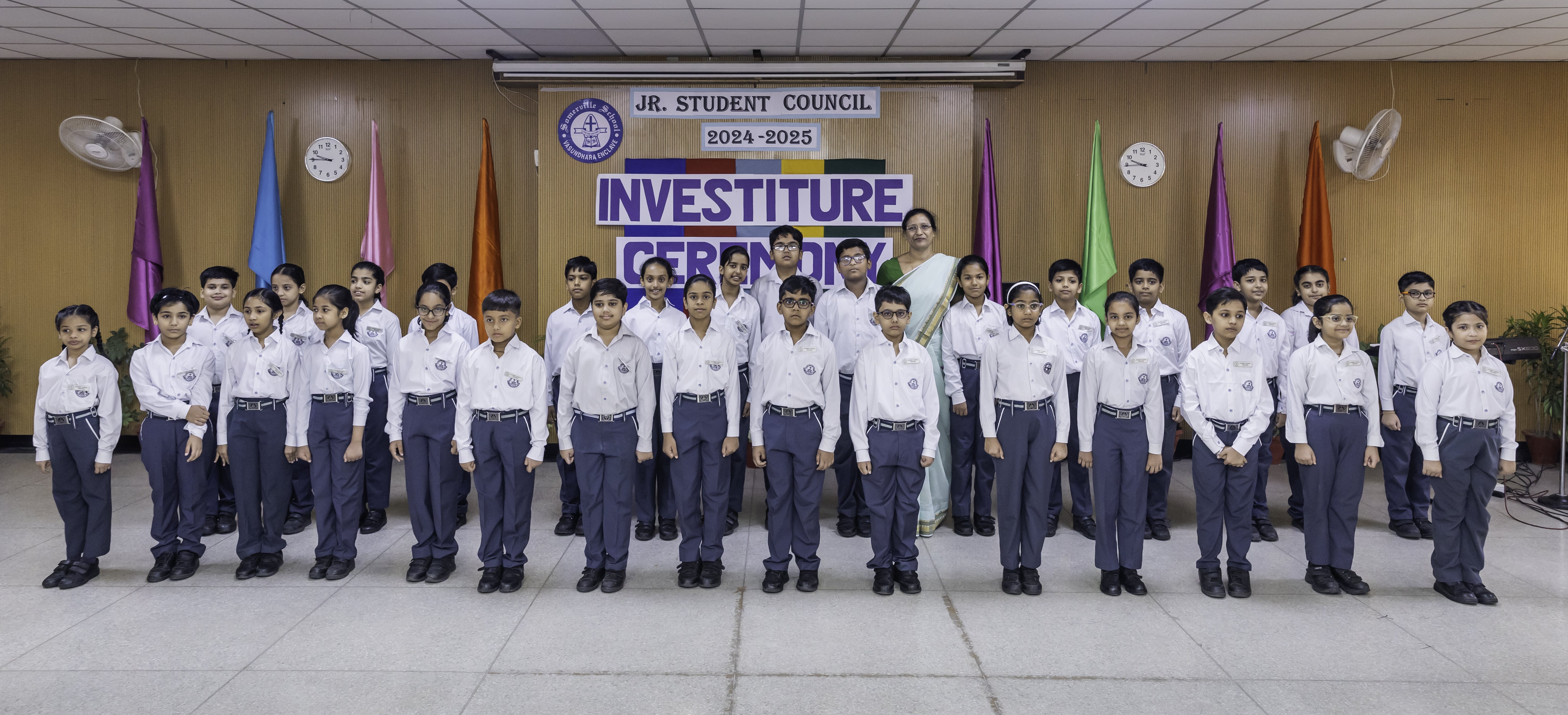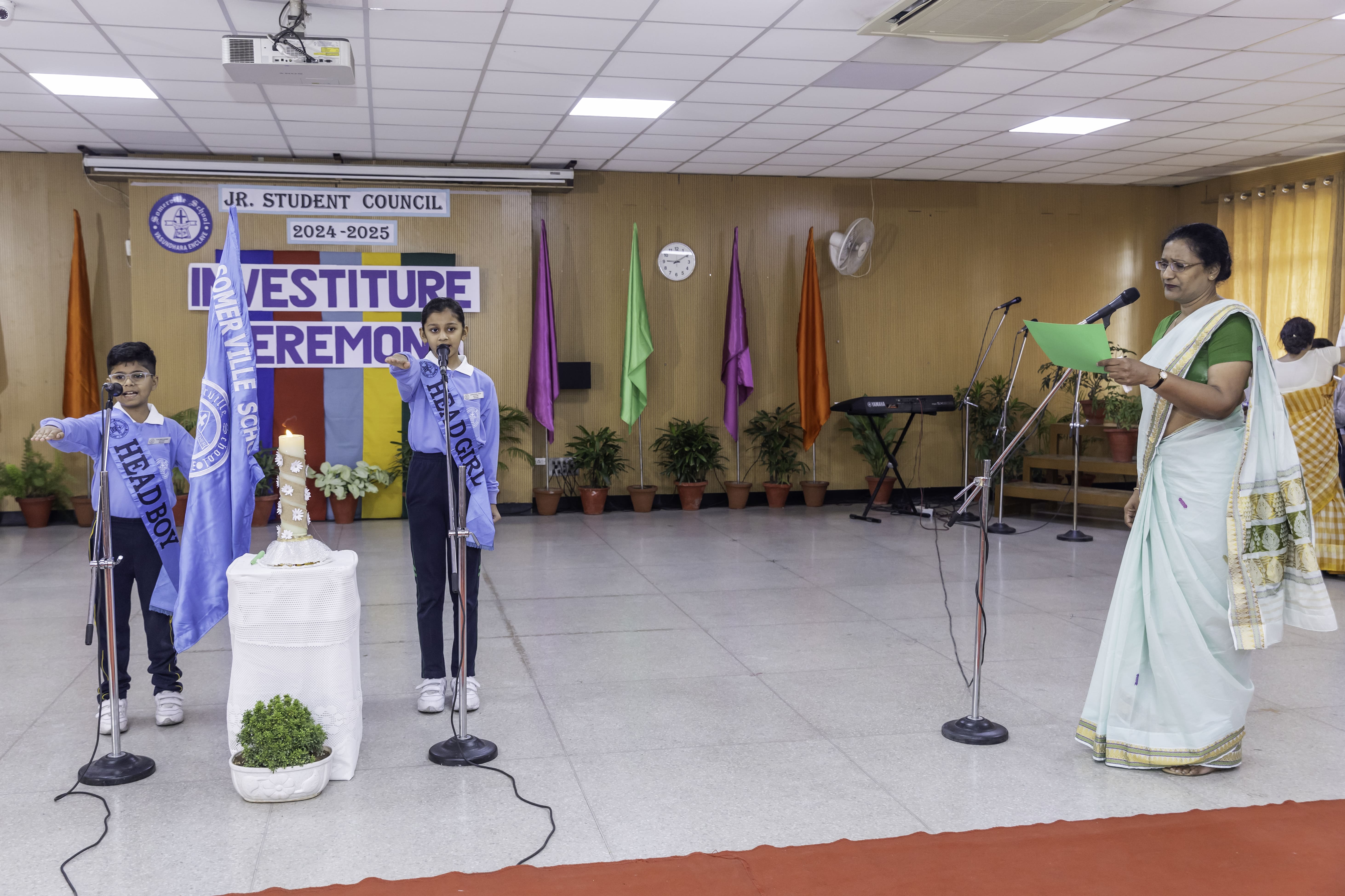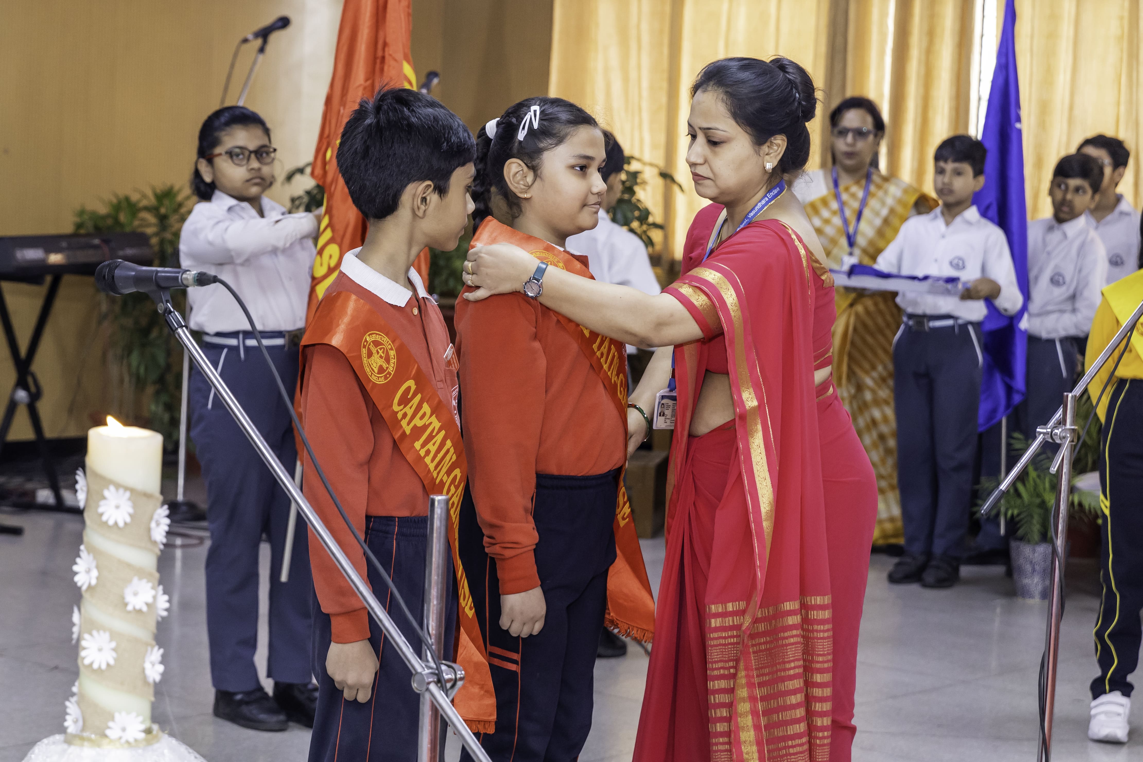 The ceremony commenced with a short assembly followed by the investiture of the Head Boy, Ritul R Kumar, and the Head Girl, Devna Gopakumar. The Head Boy and Head Girl received their badges and sashes from the Principal, Ms Esther Mani and took their oath of office.