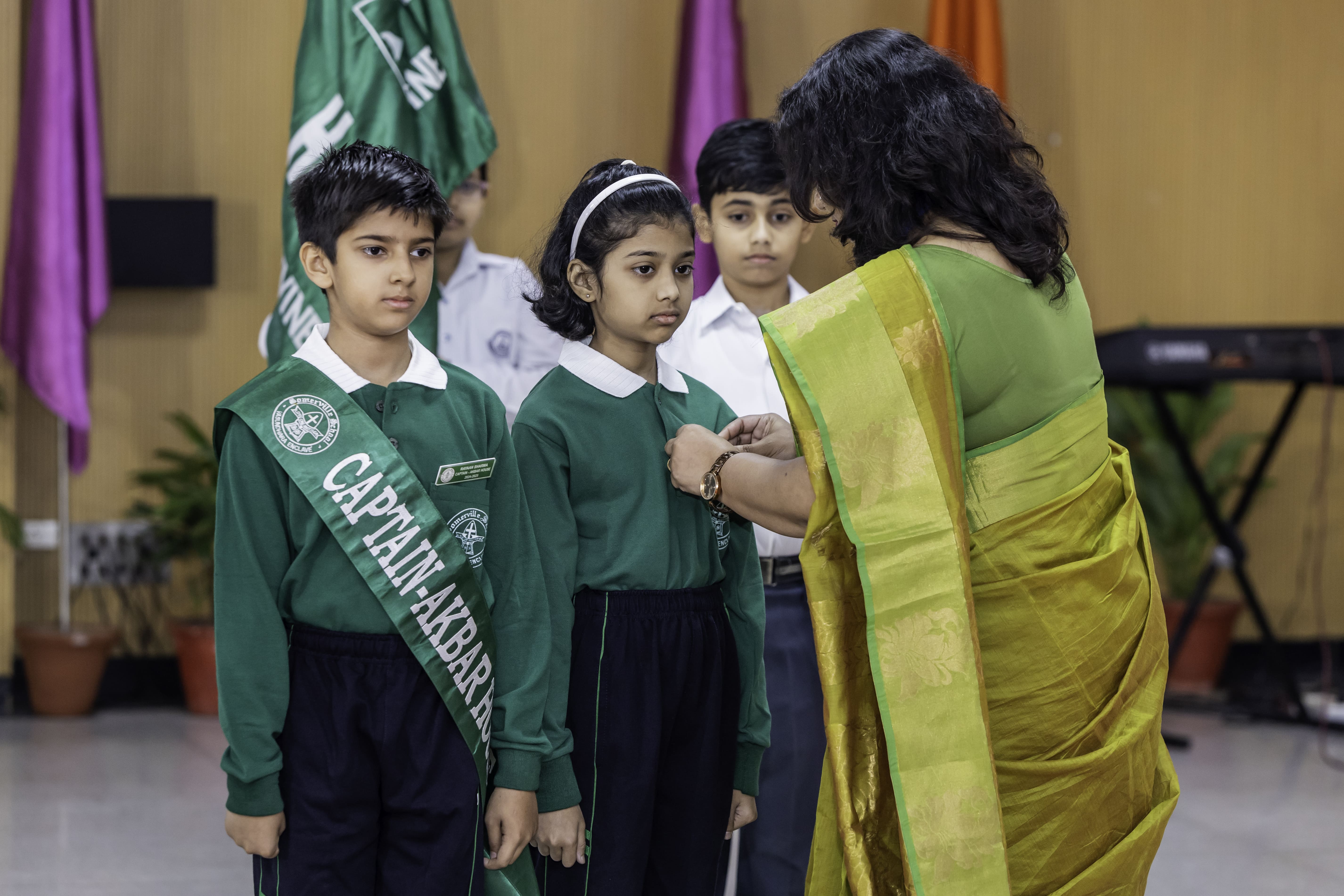 Akbar House Captain, Ananya Gaur and Vice-Captain, Ansh Chouhan took the oath of office, upholding the motto of their House “Tolerance is Divine”. Ms Chitrali Singh, the House In-charge conferred the badges and sashes and administered the oath to them.