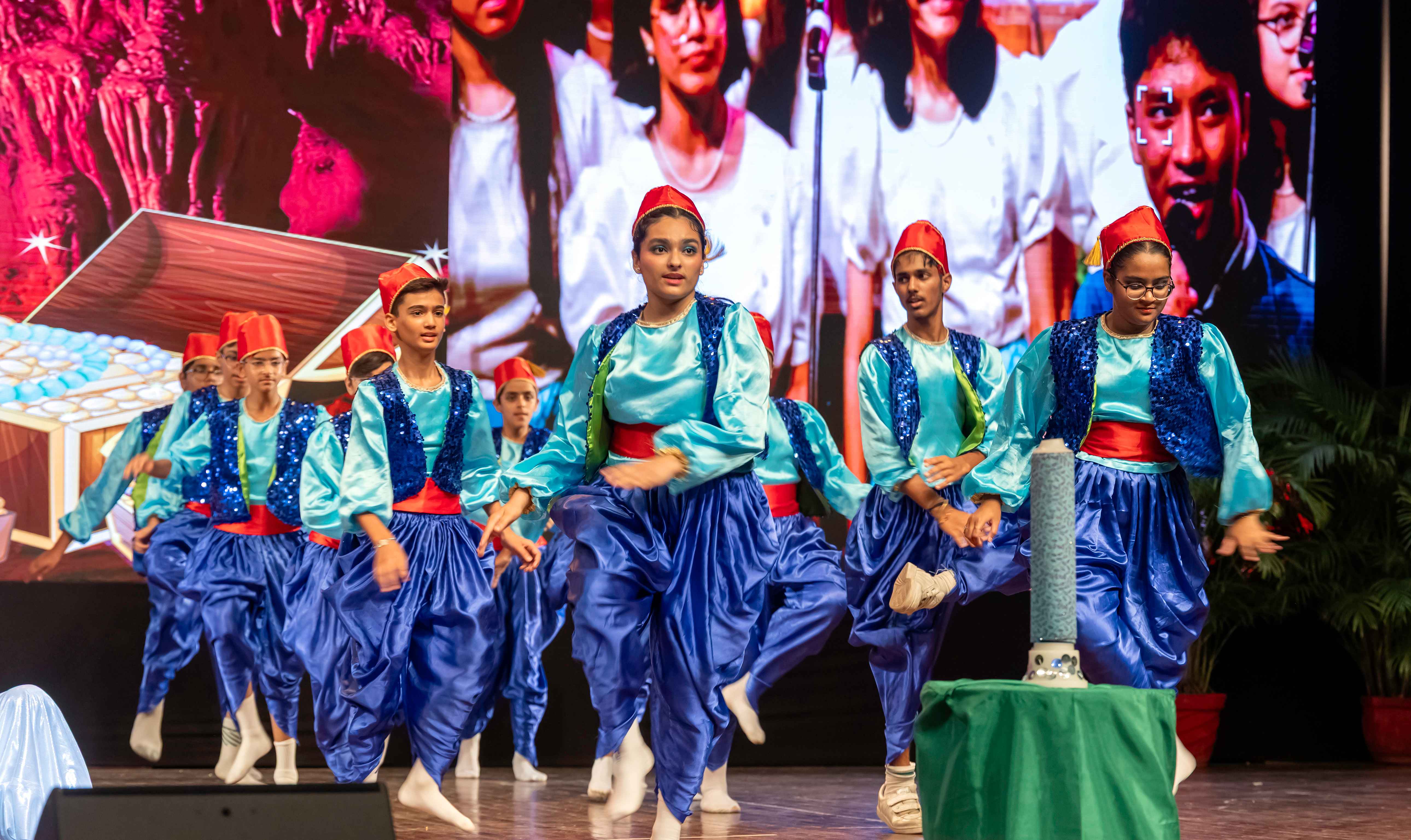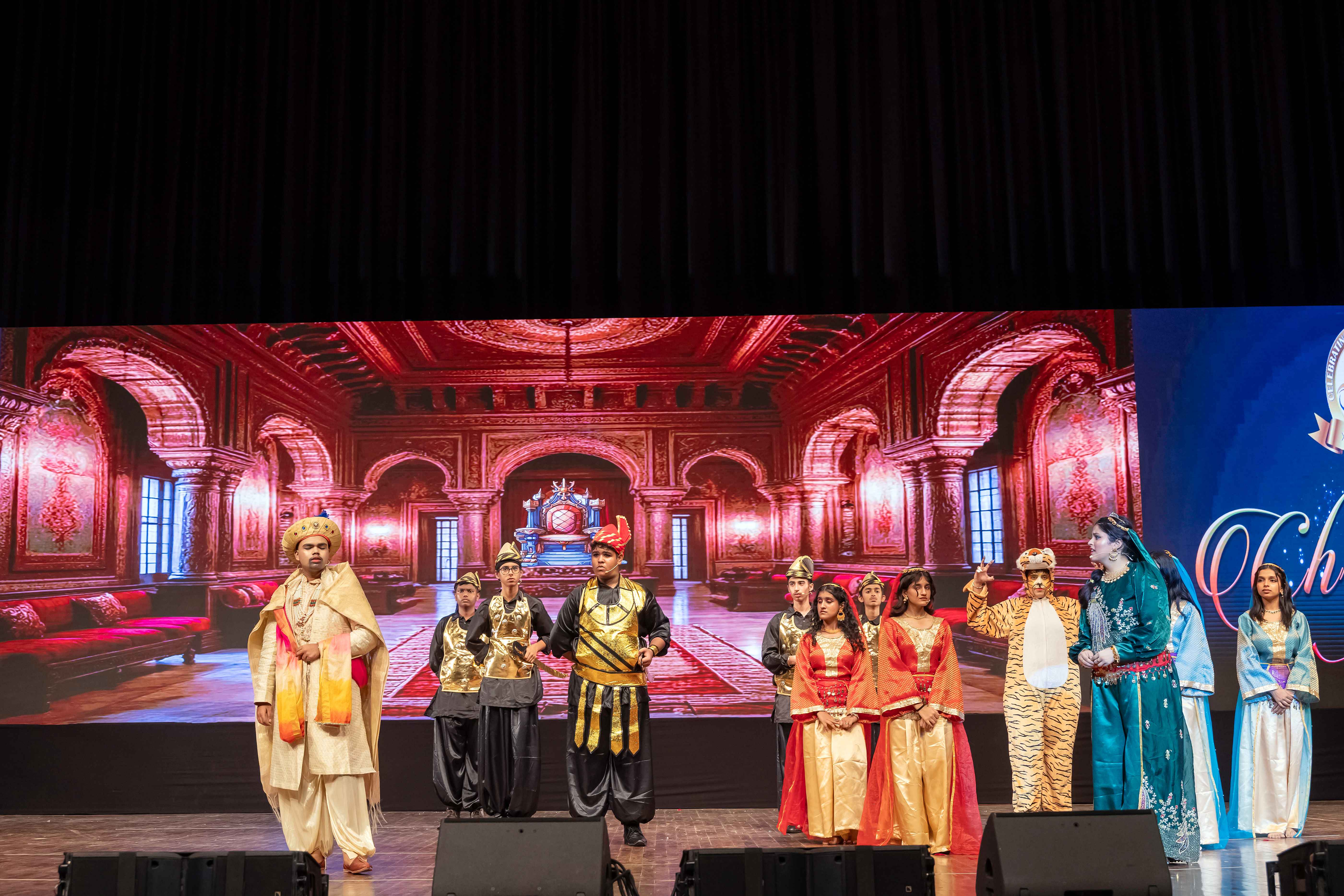 The highlight of the evening was the grand theatrical performance `Aladdin’ a musical performed by the students of Classes VI to XII. The story of Aladdin discovering his true identity and purpose in life while battling social and personal challenges, with the assistance of the inimitable Genie, the strong-willed Jasmine and his bungling friends, was told through excellent enactment and mesmerising songs and dances. The dazzling costumes, the life-like background scenes and graphics, and the captivating performances made it a spectacular and awe-inspiring experience. The choral ensemble of students provided live back-up music through evocative solos, harmonies and energetic song tracks that provided strong support to the cast and helped tell the story. The choir’s stellar performance amazed the audience.