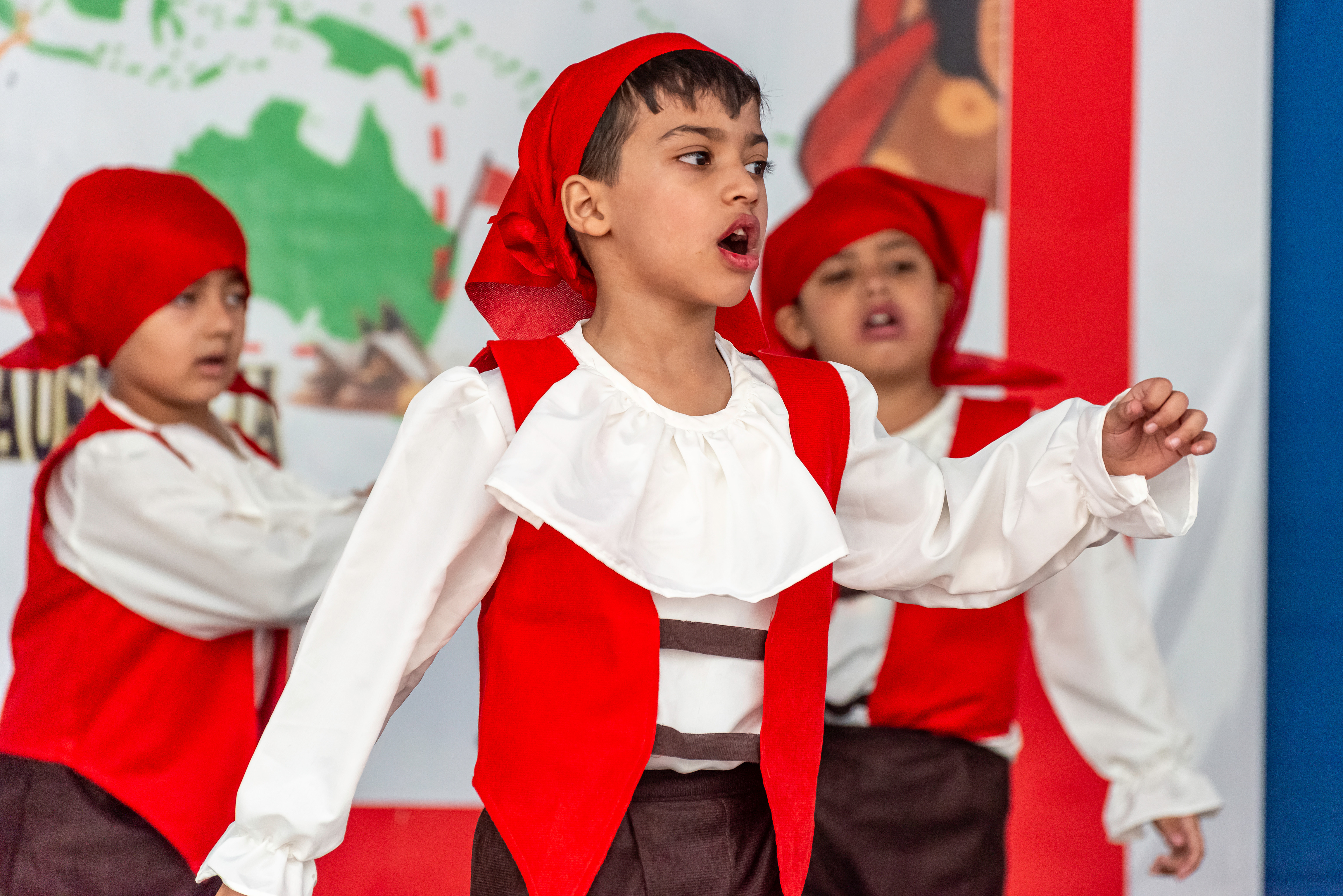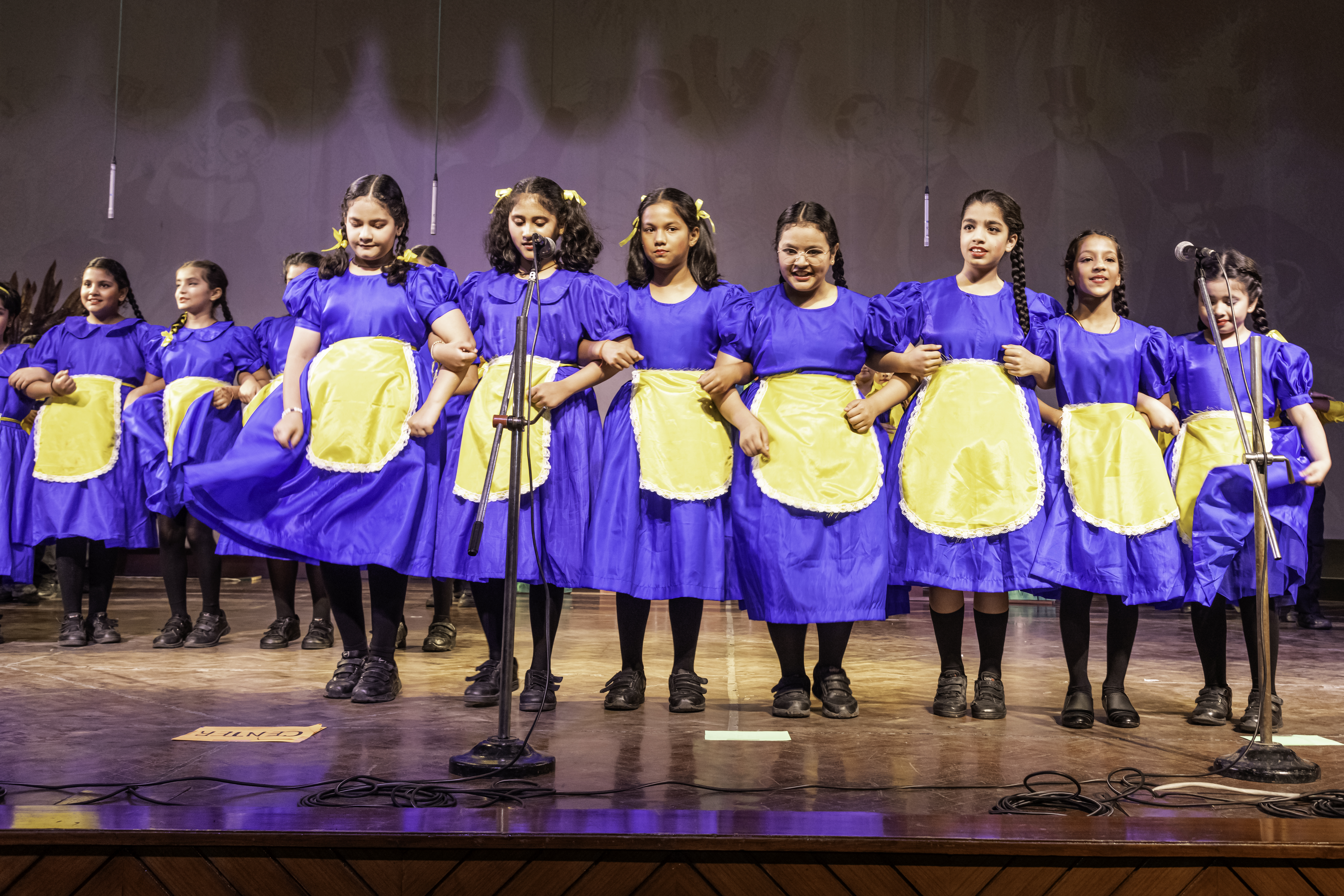 In another twist, Mr. Fogg encountered pirates on his journey and made his way to Spain. There, students portrayed matadors and a bull in an energetic performance of the children, capturing the fiery essence of Spanish culture. Finally, Phileas Fogg, Passepartout, and Aouda return to England just in time, winning the bet and concluding their adventure. The grand finale brought all the students together to sing, “We’re the Children of Yesterday’s Dream,” a song celebrating teamwork and the possibility of a united world. The heartfelt performance left the audience inspired with hope for a brighter, more connected future.