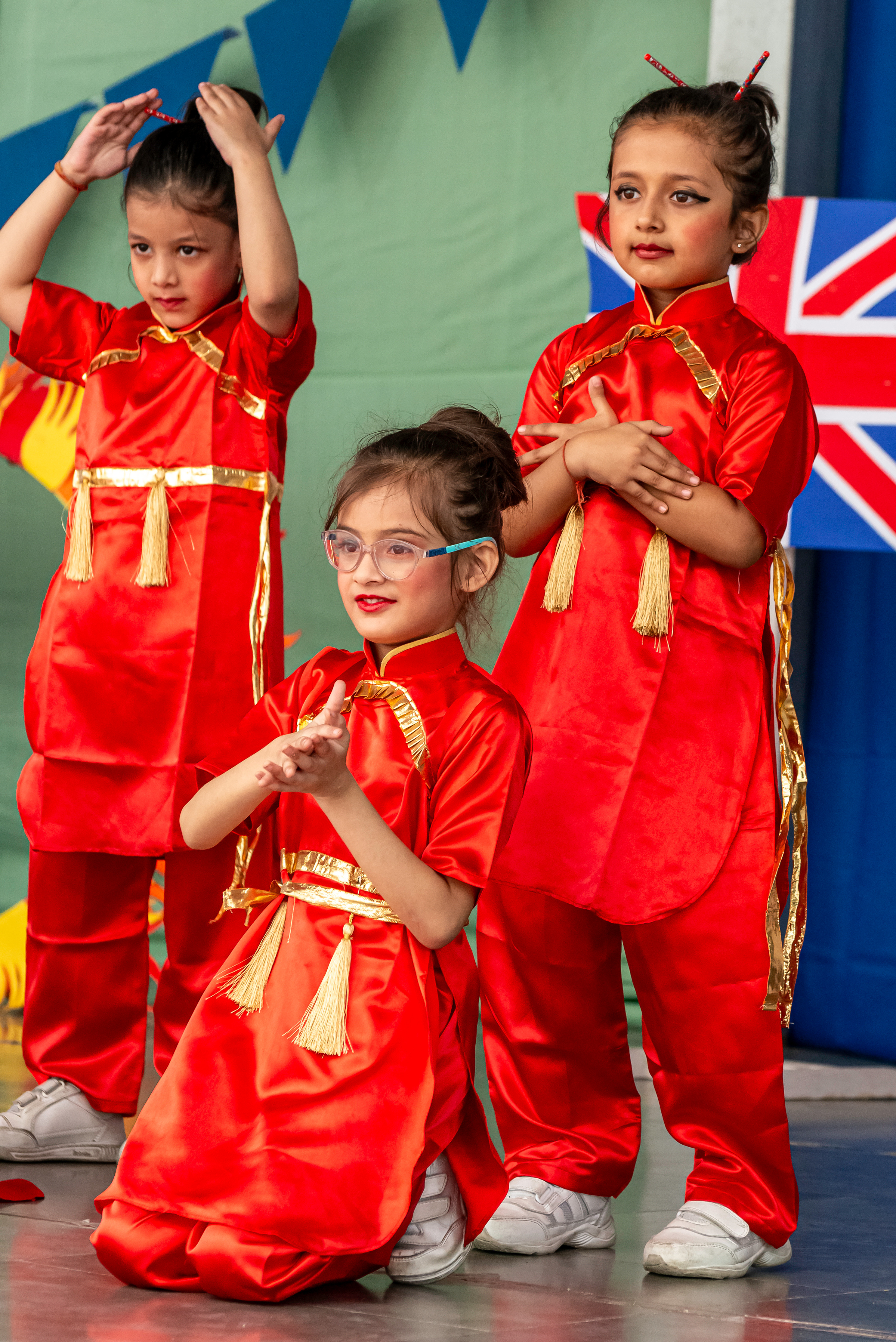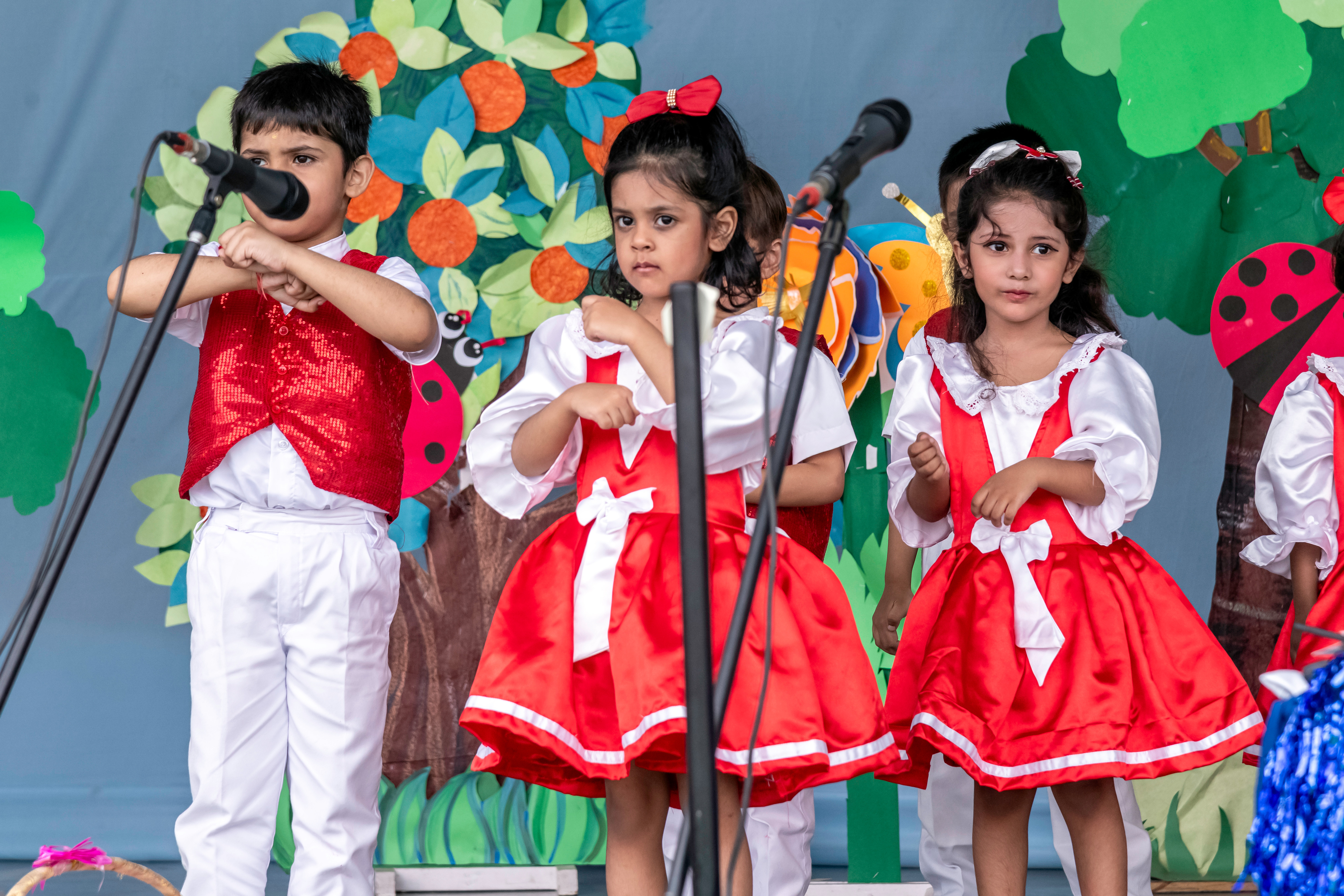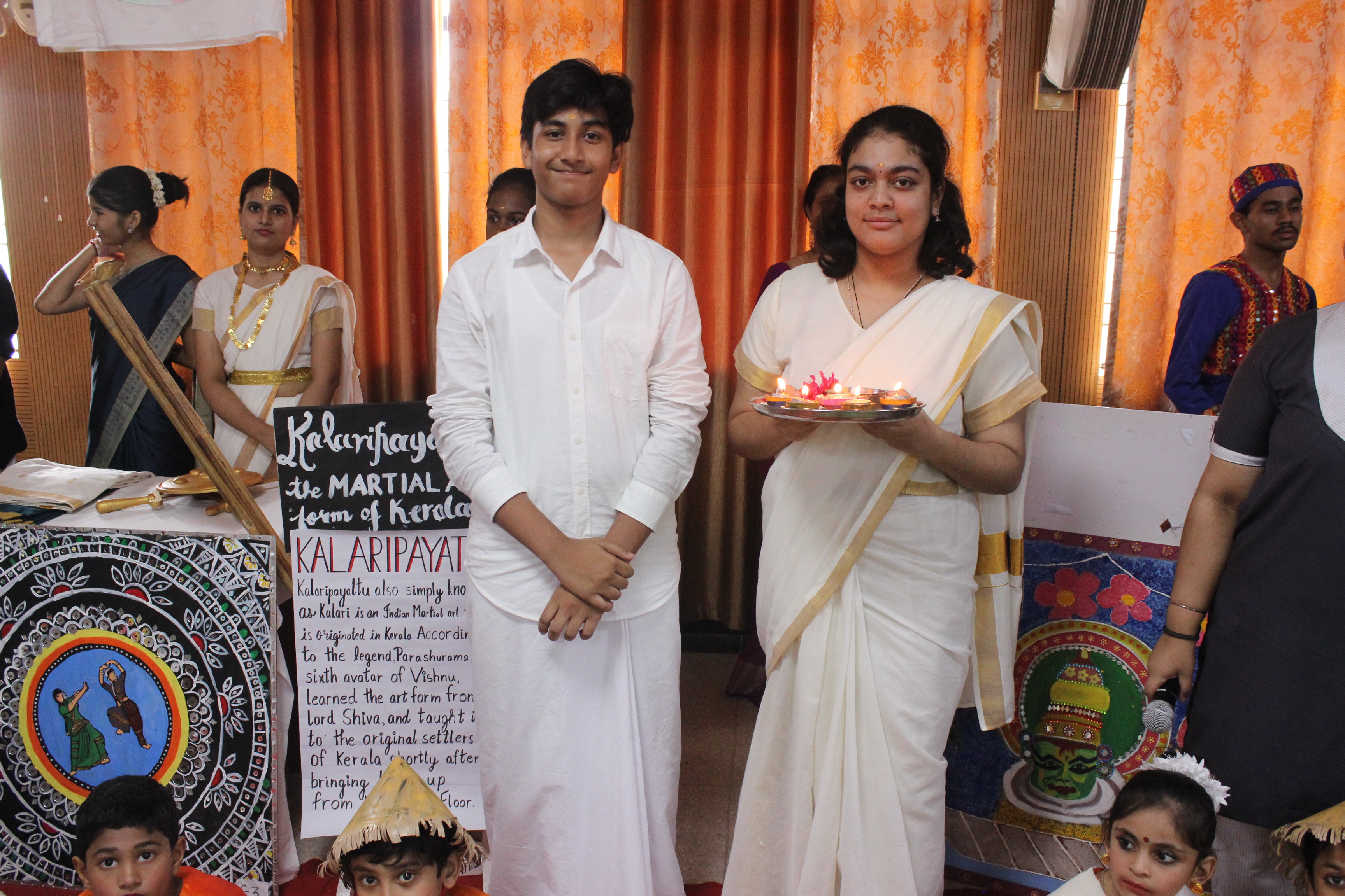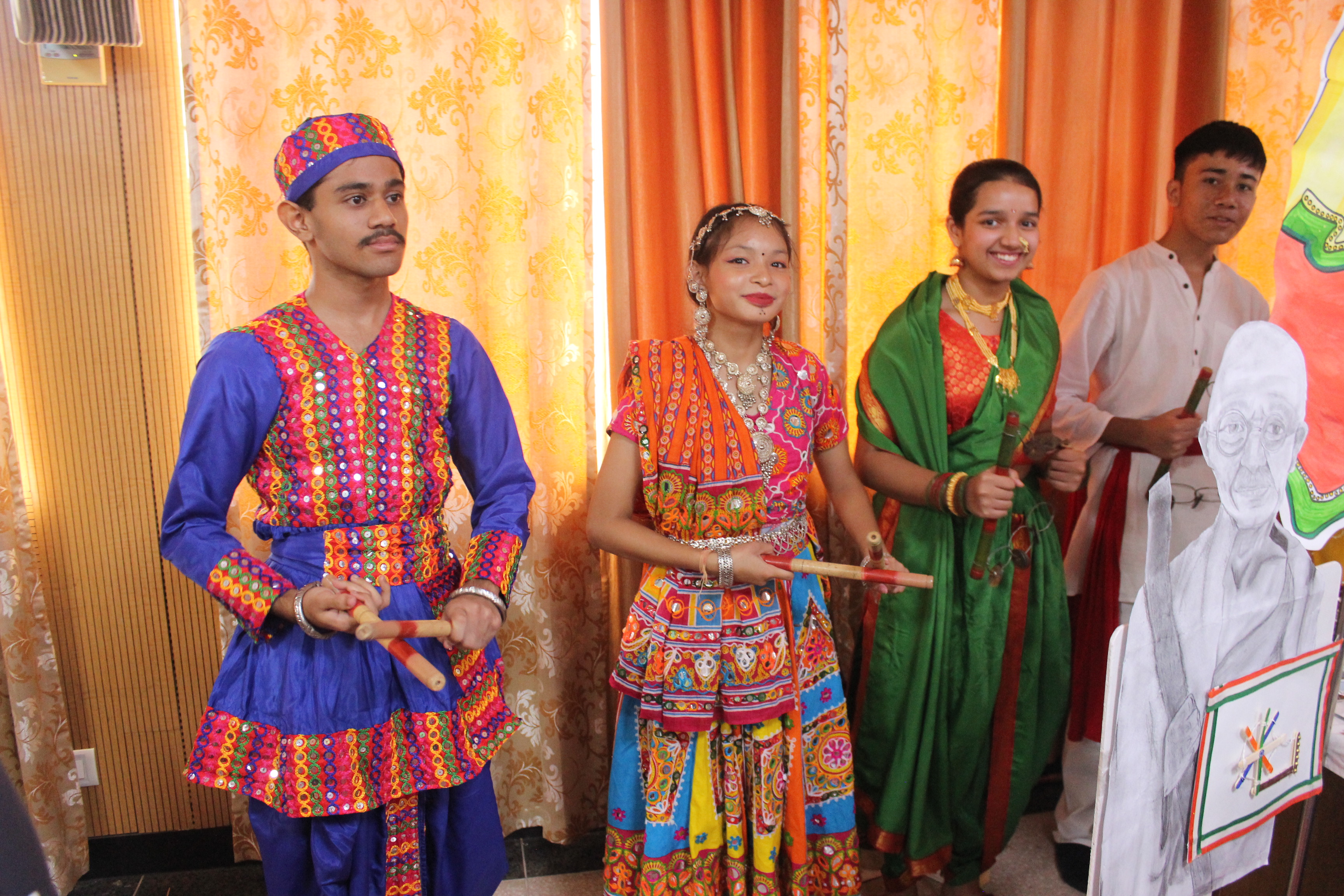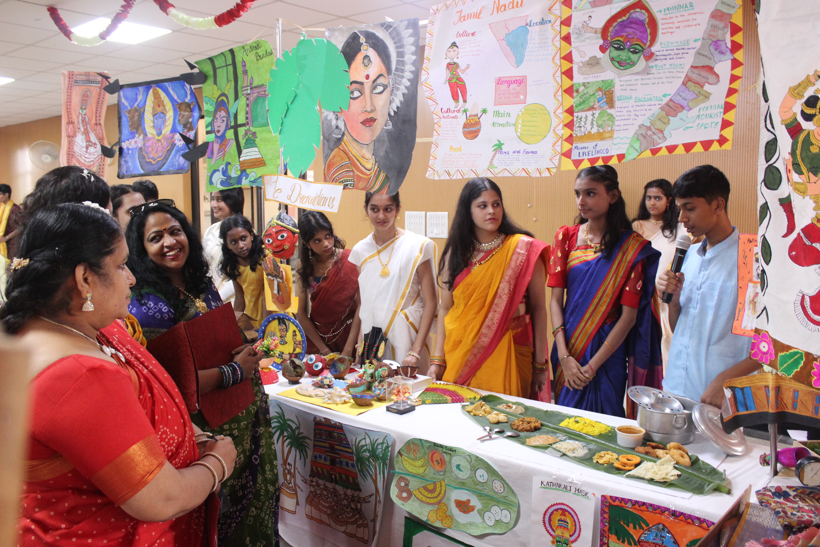 The Head Girl of the senior school, Devna Gopakumar began the programme with prayerand the Head Boy, Ritul Kumar delivered the welcome address.Four students presented a mesmerizing instrumental music composition,Albelain RaagAhirBhairav. The Head Girl of the primary school,KayraKunal Shah, spoke eloquently on the significance of Independence Day, emphasizing the role of young citizens in building the nation's future.The Indian music choir enthralled the audience with their melodious rendition of a patriotic song,SatrangiRango Sa. The Principal urged the gathering to practice the values represented by the spokes on the Ashoka Chakra in the Indian Flagand cherish the diversity of people and cultural practices that is unique to our country.