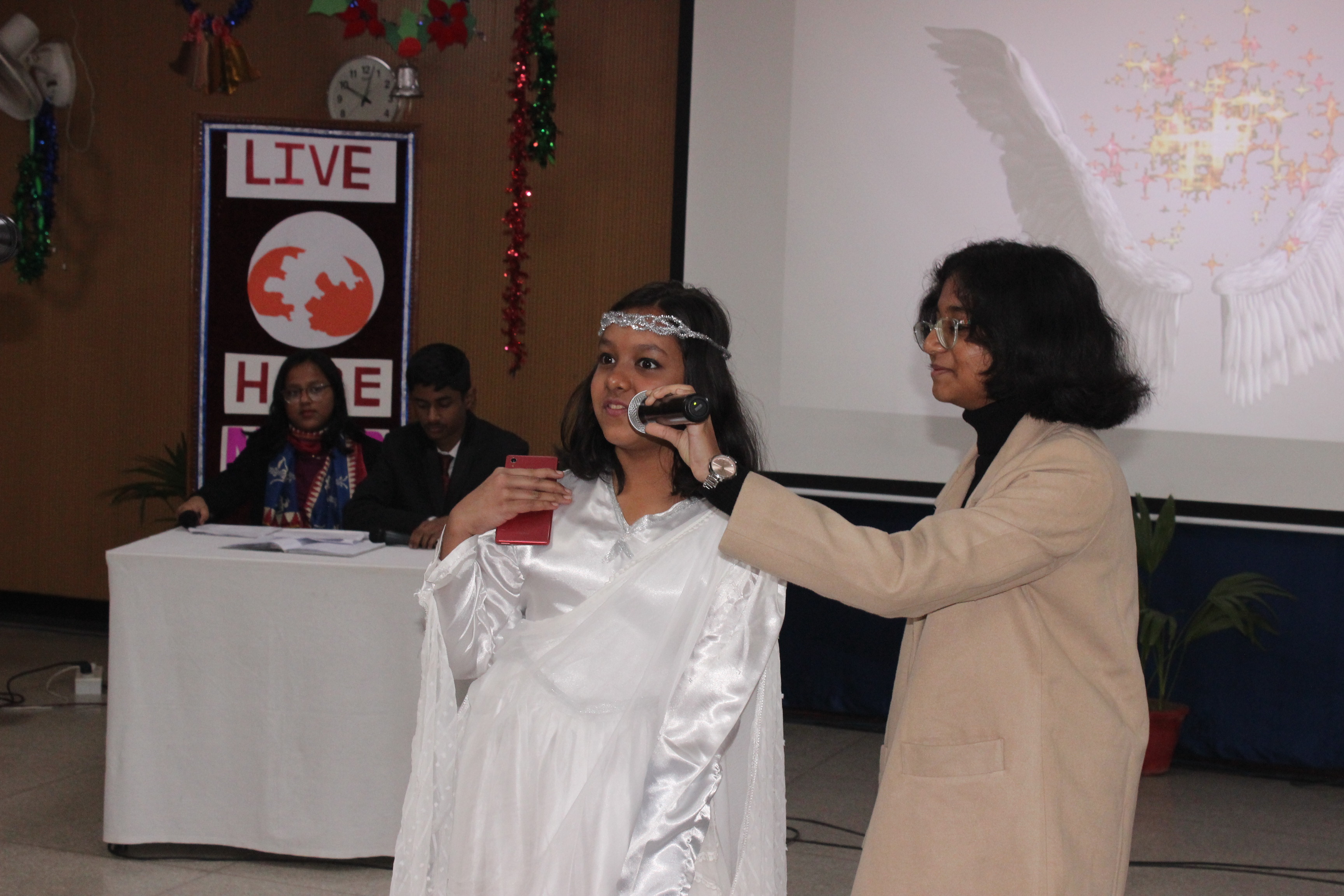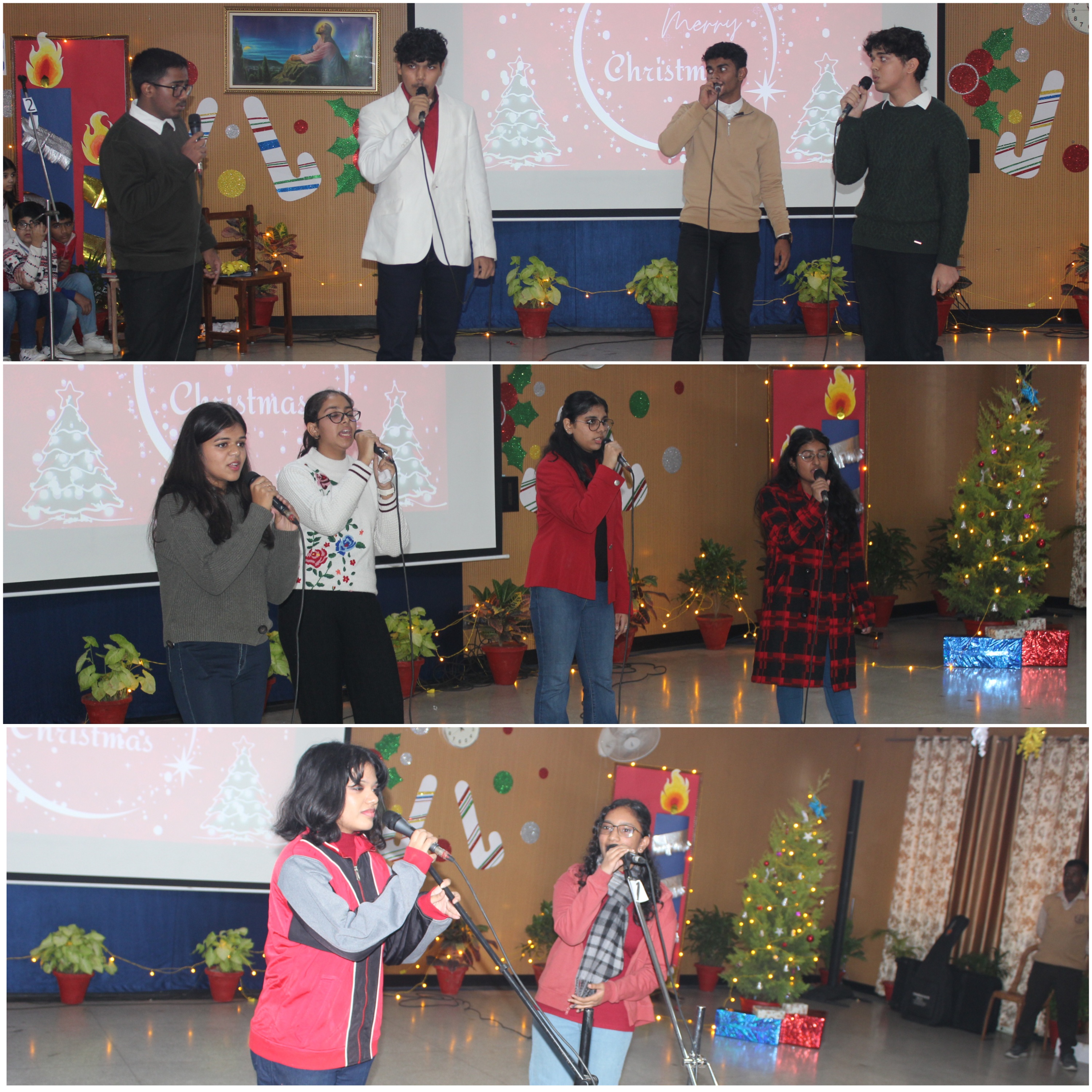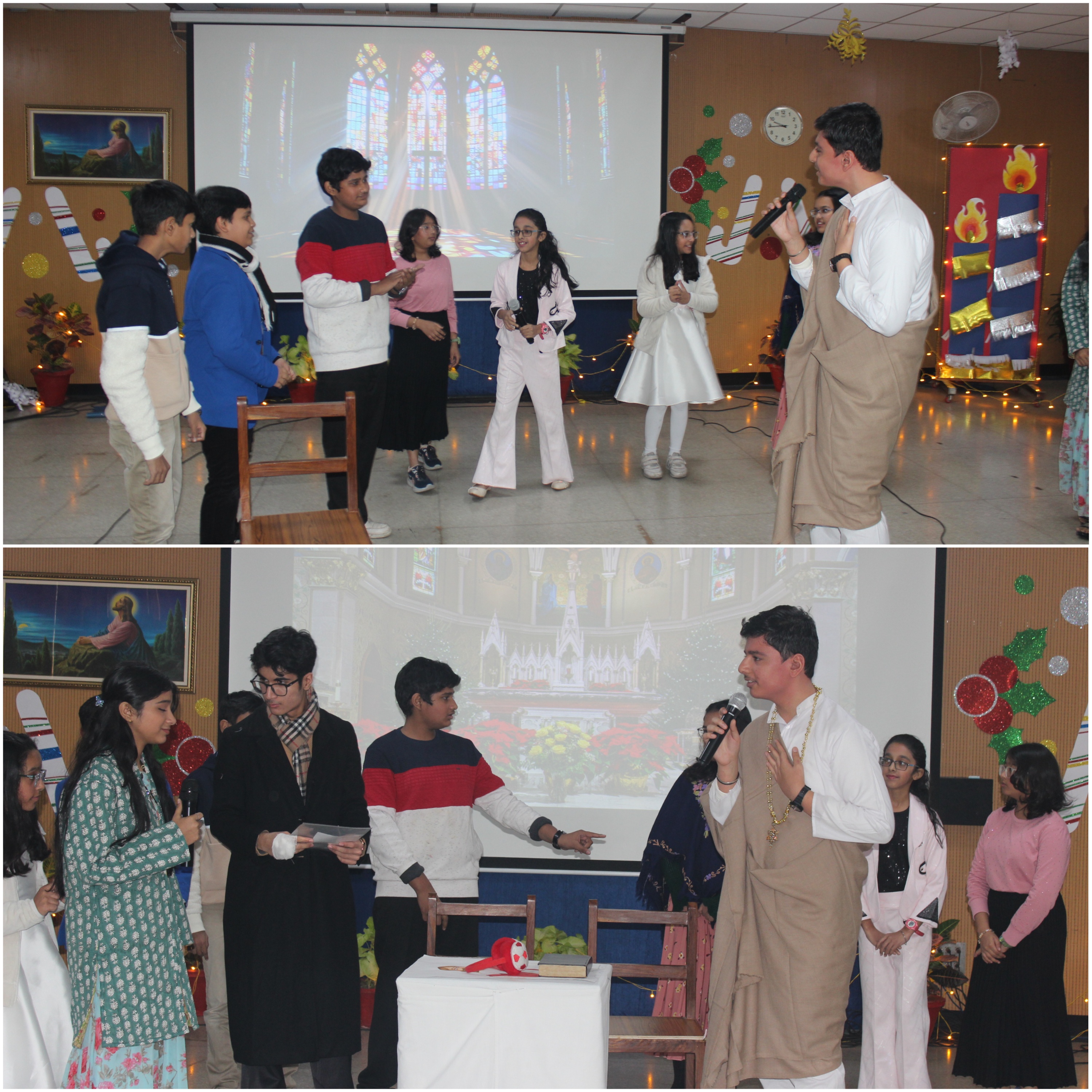 The Senior School held Christmas celebrations on 20 December, 2023, in the school auditorium. The auditorium was beautifully decorated with banners, hand-made chandeliers and wreaths making the atmosphere joyful. Students from Classes VI to XII attended the programme.