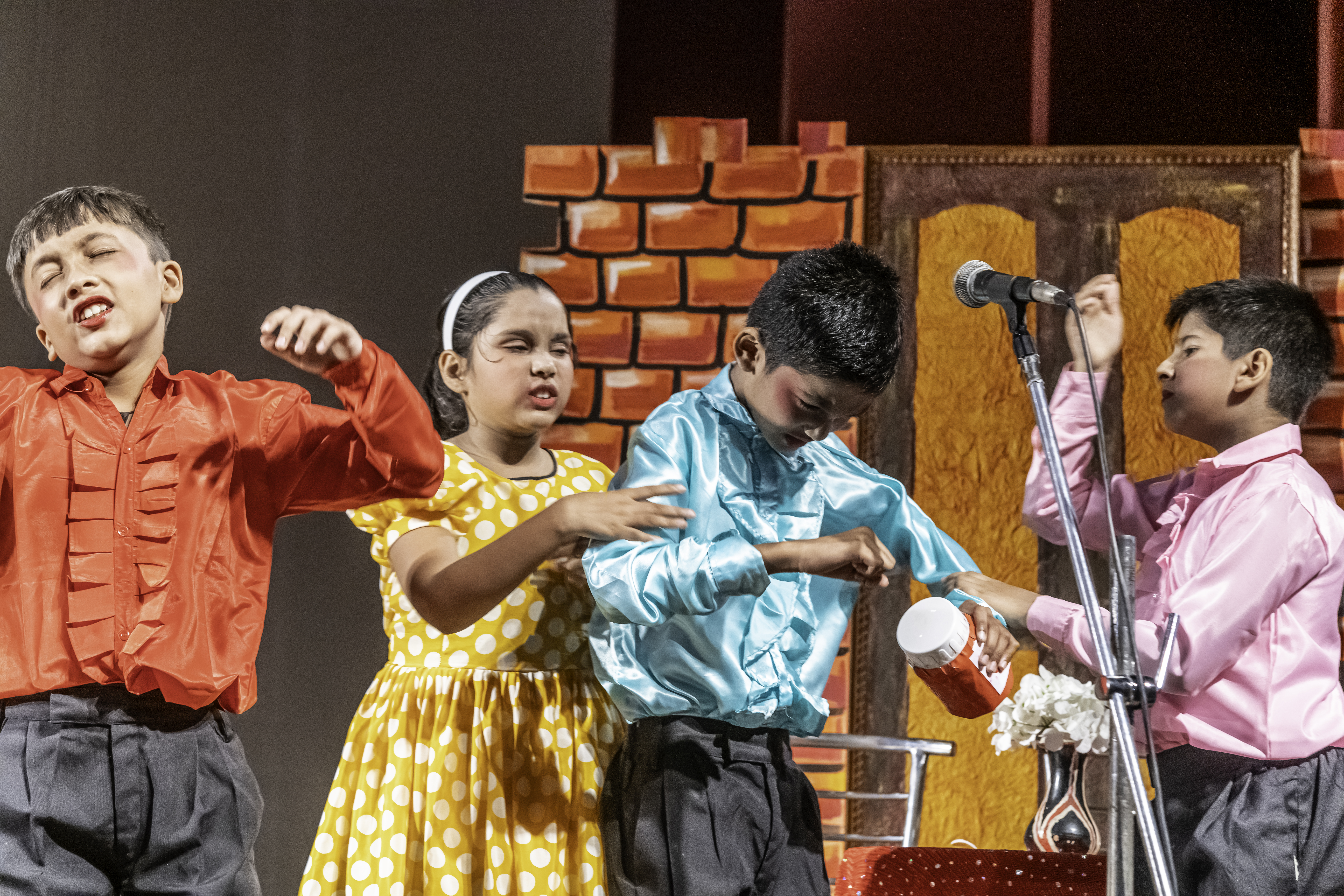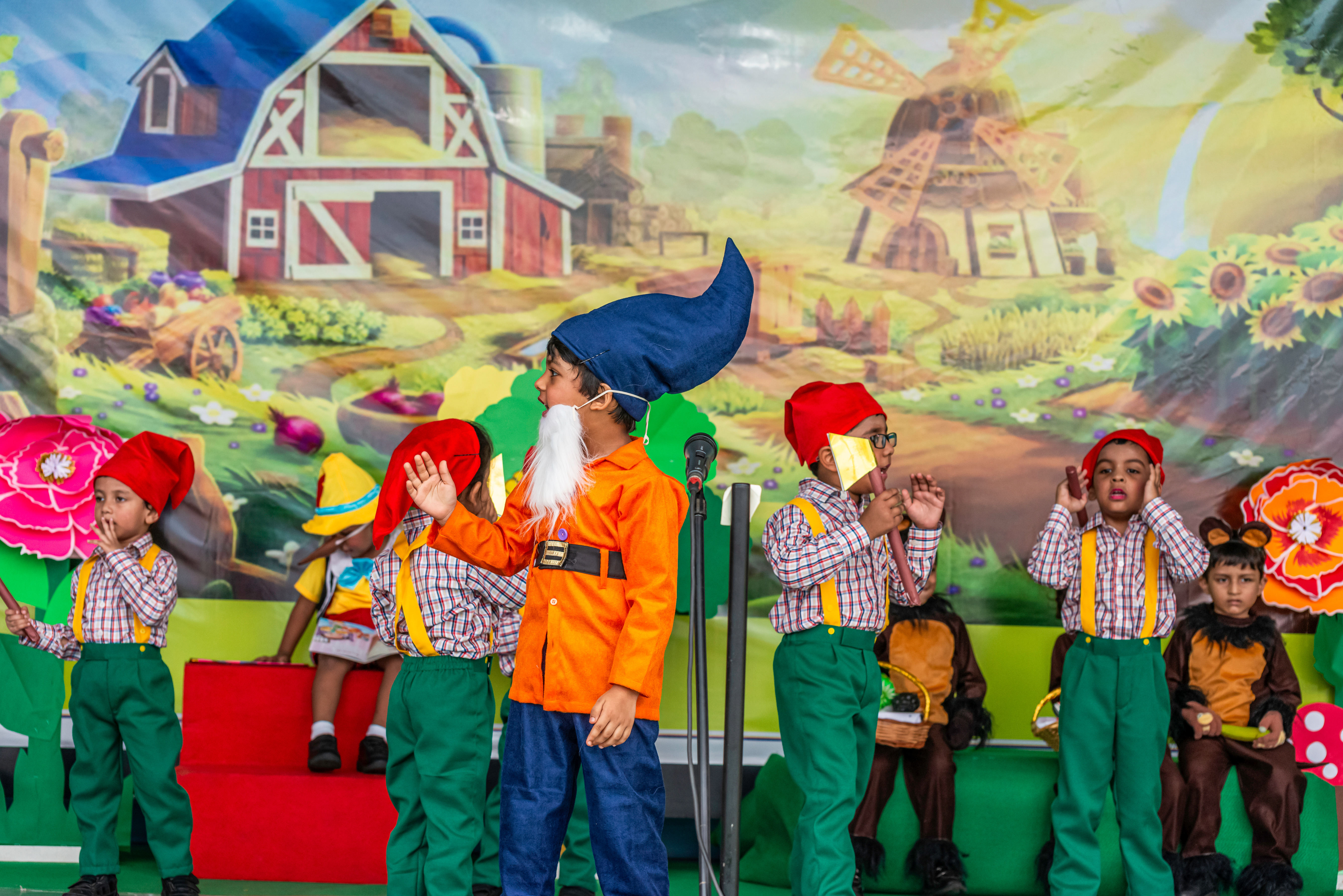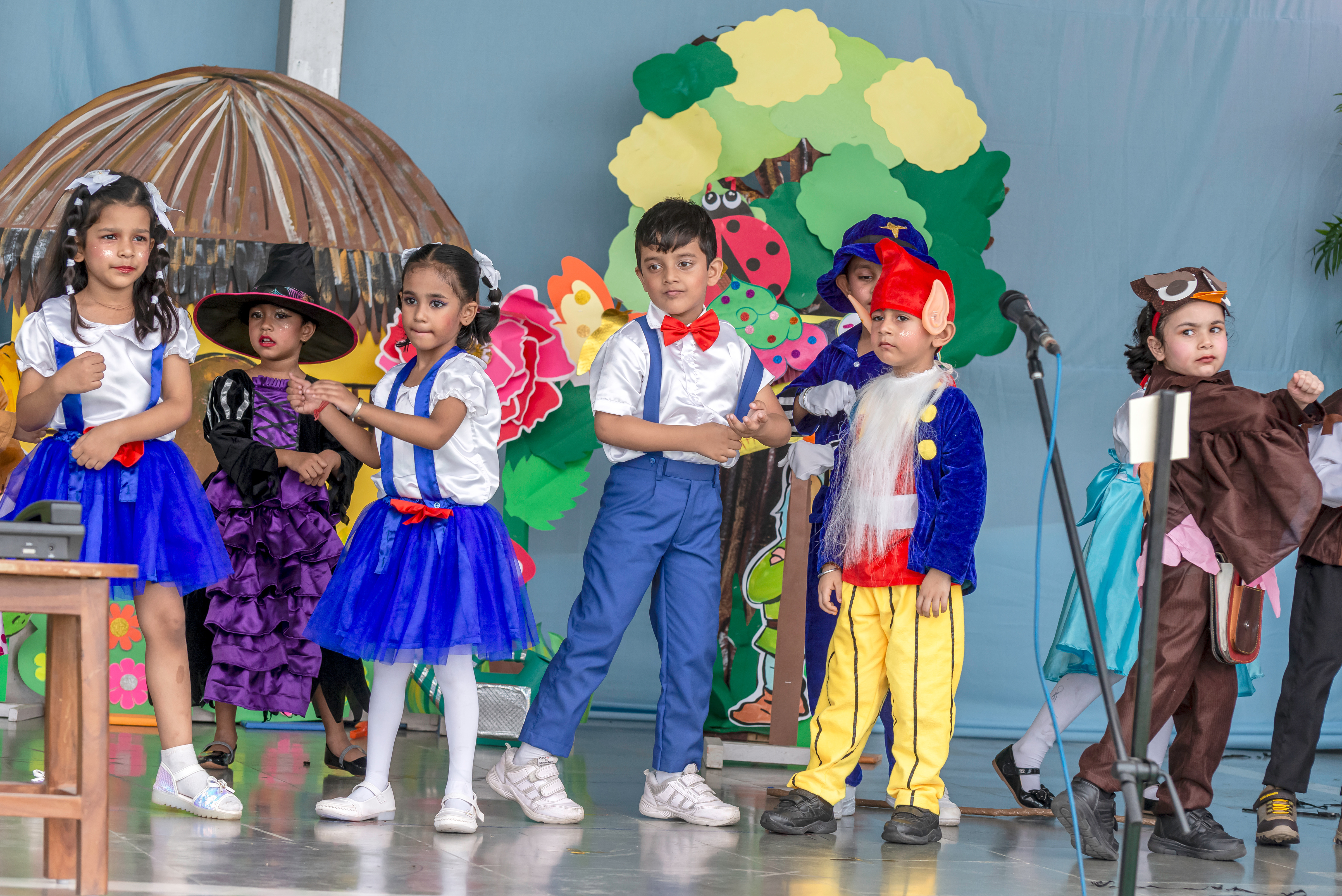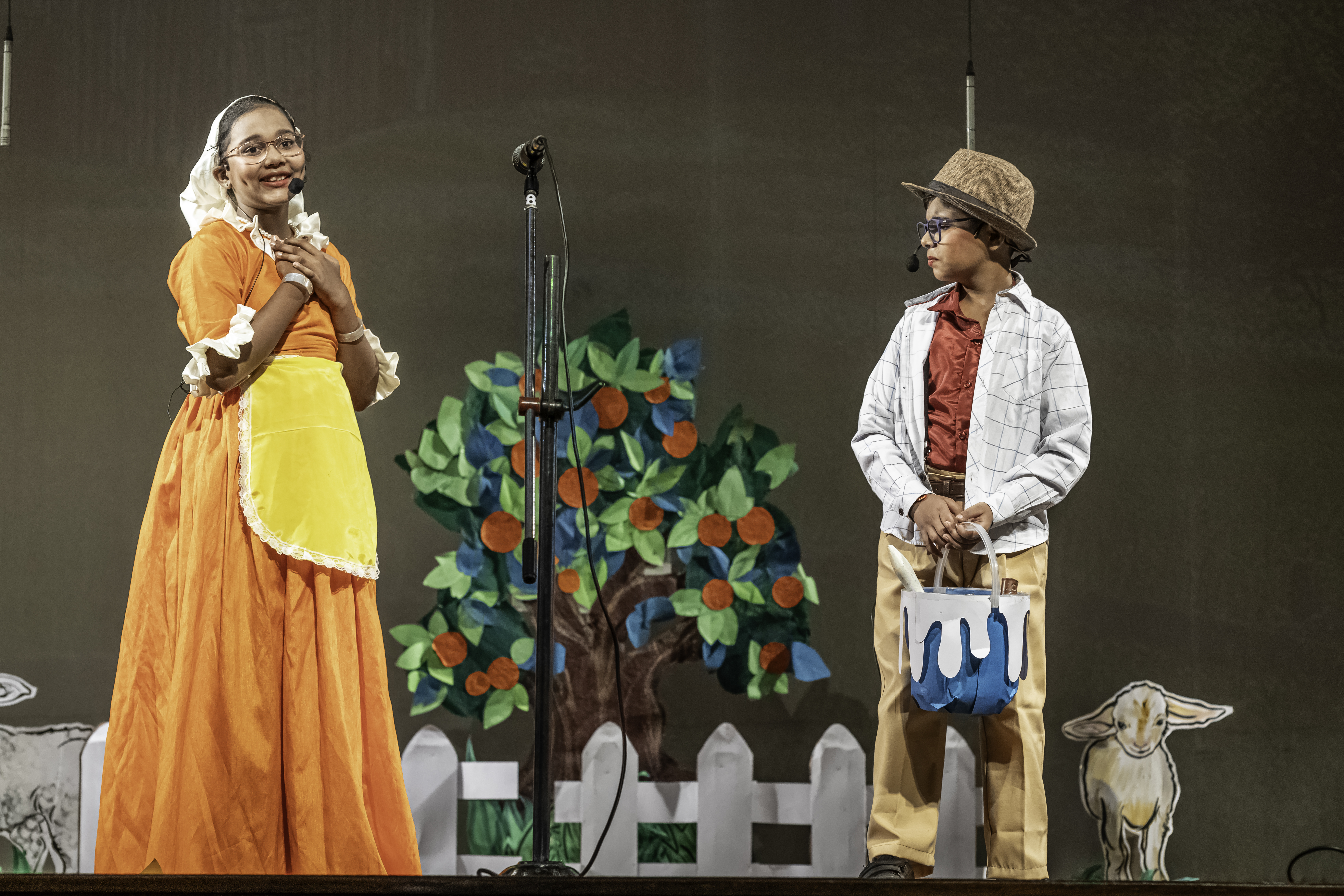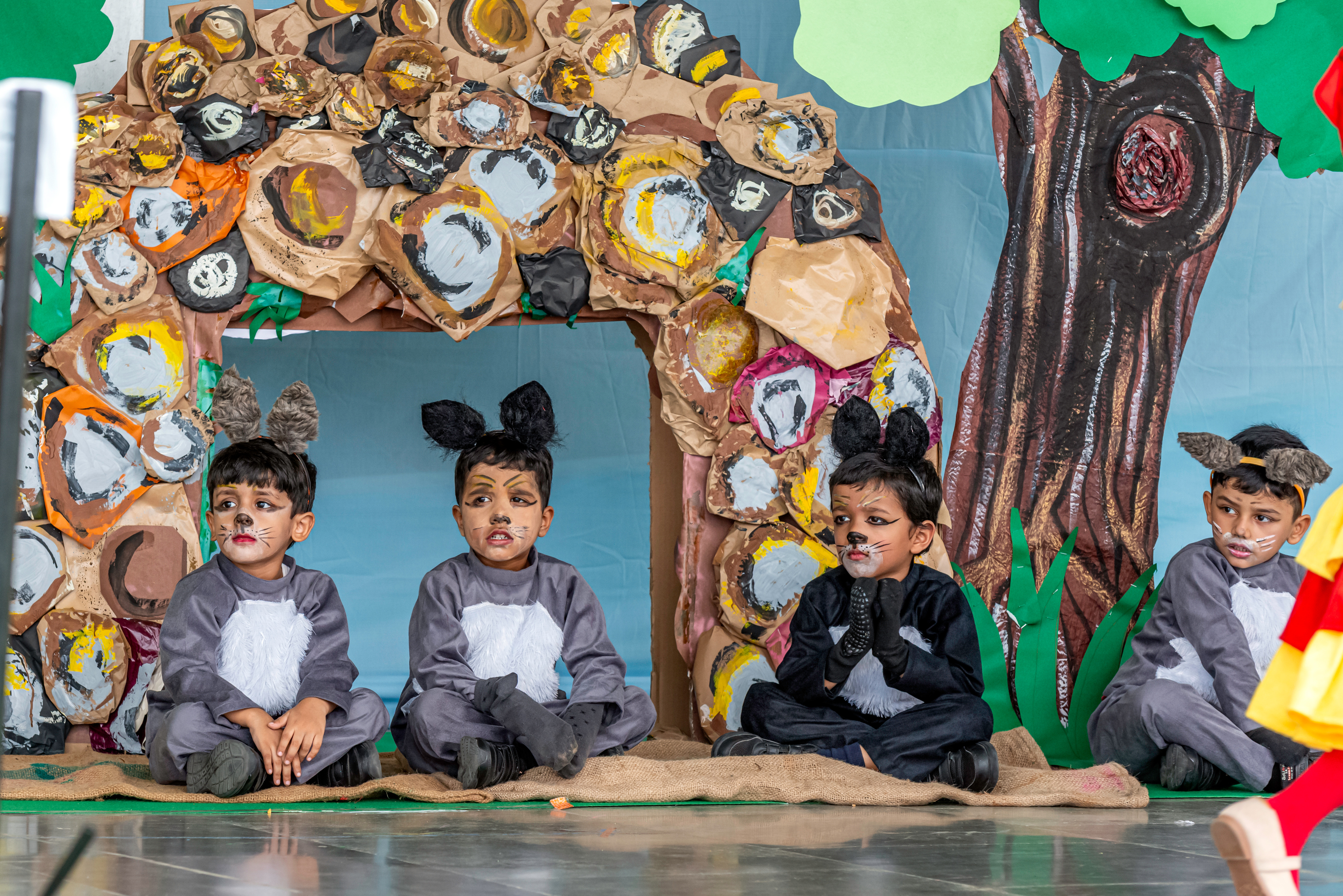 Throughout the play, familiar characters from various tales like the Three Little Pigs, the Big Bad Wolf, Cinderella’s step-sisters, Pinocchio, Three Bears, Snowhite and the Seven Dwarfs and the ‘The little Red hen’ made special appearances, captivating the audience. The play revolved around a hardworking hen who discovered some seeds on a farm and decided to plant them. She sought help from various story characters to sow and water the seeds, but each refused. Undeterred, the hen continued her work alone, tending to the seeds, harvesting the crop, grinding the wheat, and baking it into bread.