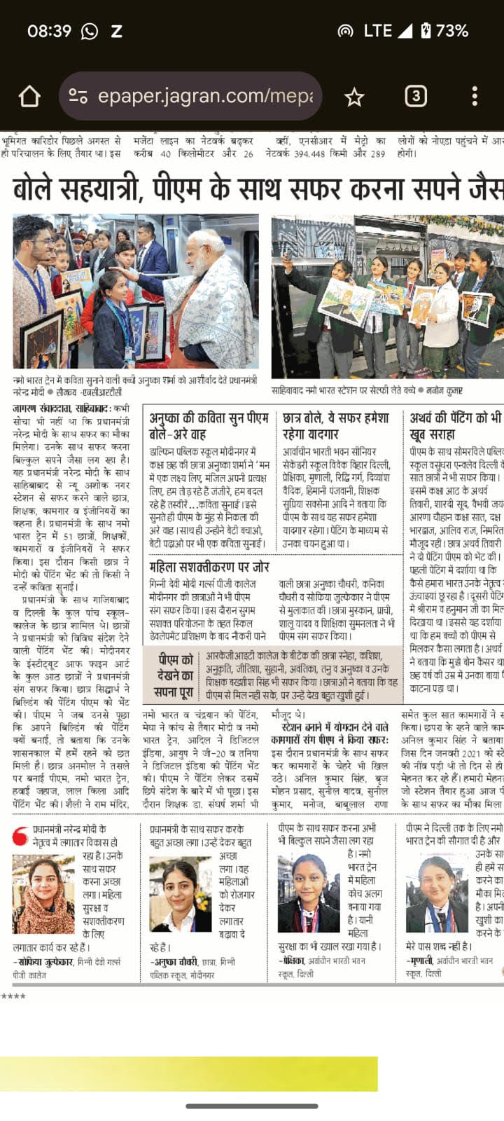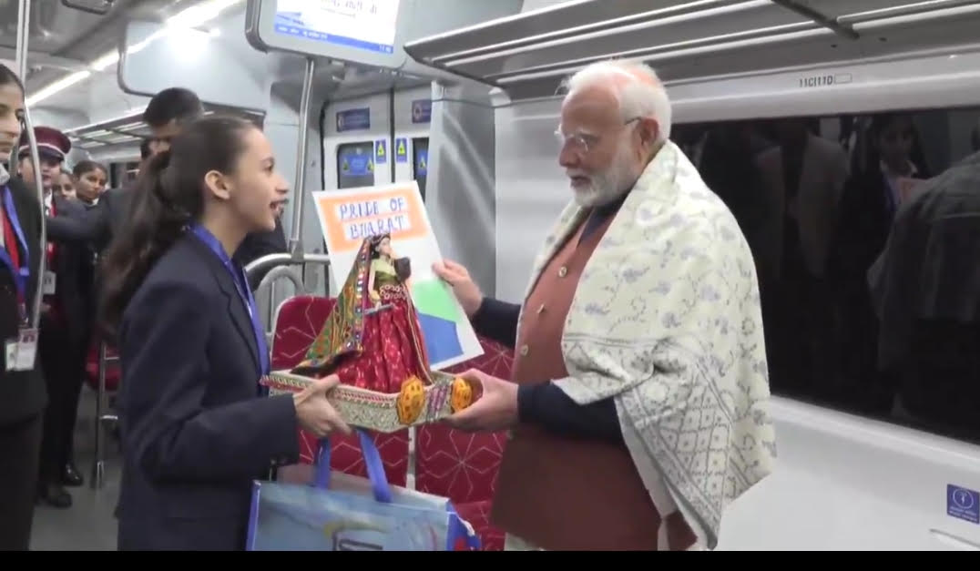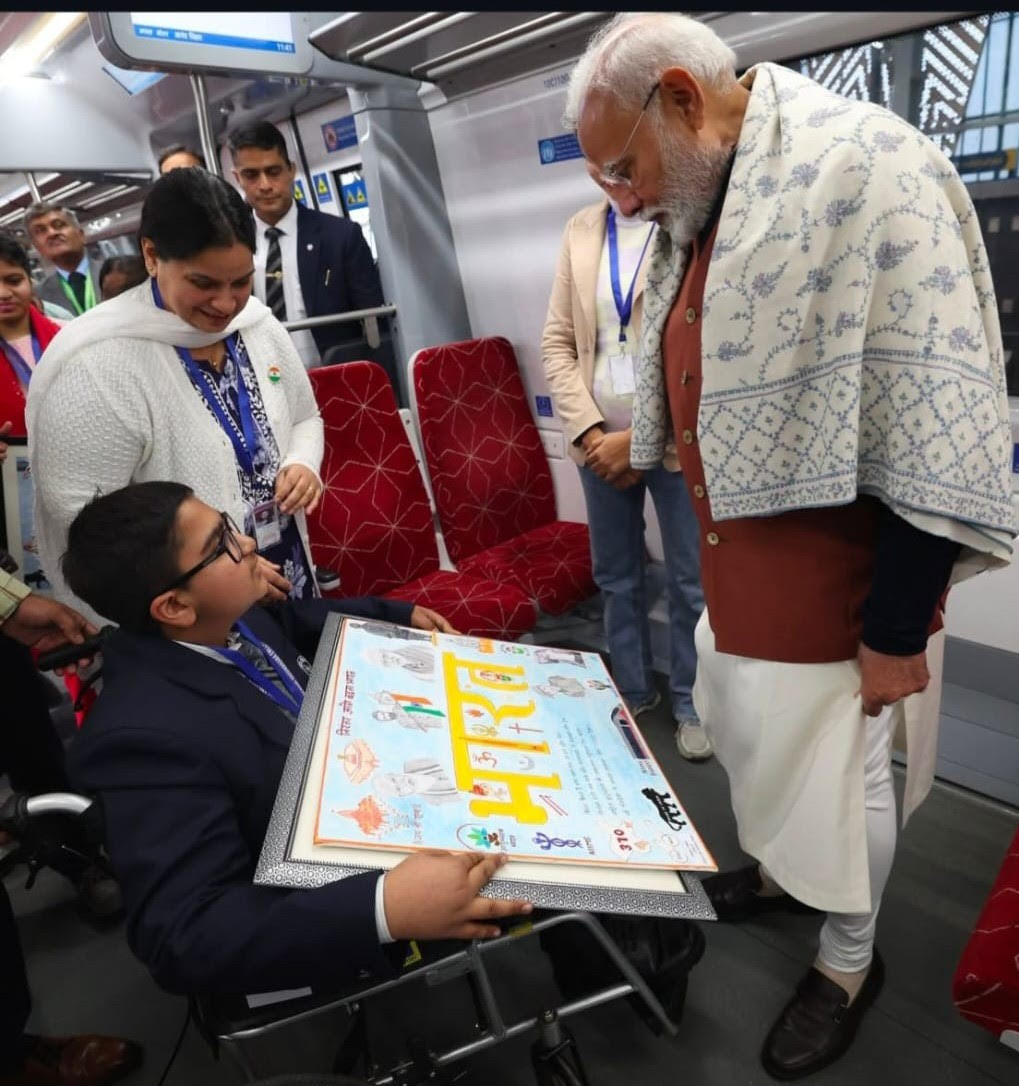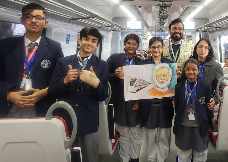 Atharva Tiwari of VIII A and Aarna Chauhan of VII B had the special honour of personally interacting with the Prime Minister as they presented him their art work, recited poetry and answered his questions. He congratulated them for their efforts and talents. The Prime Minister had friendly conversations with school children and commuters during the train journey and told them about the significance of the Delhi-Meerut RRTS in enhancing transportation and sustainable infrastructure.