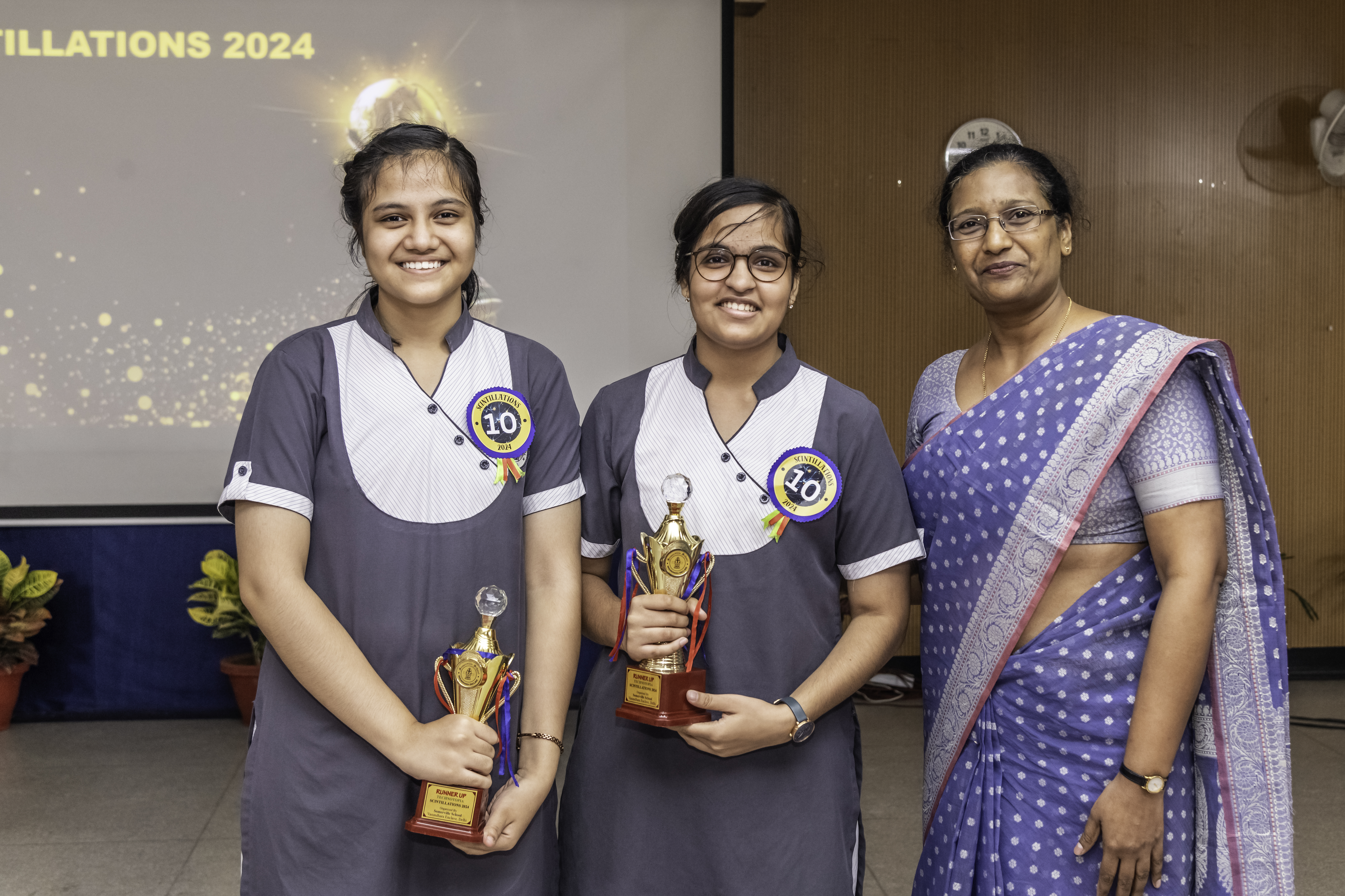 The school toppers of AISSCE and AISSE were presented trophies and certificates by Mrs.Tressler and the Principal, Ms Esther Mani.