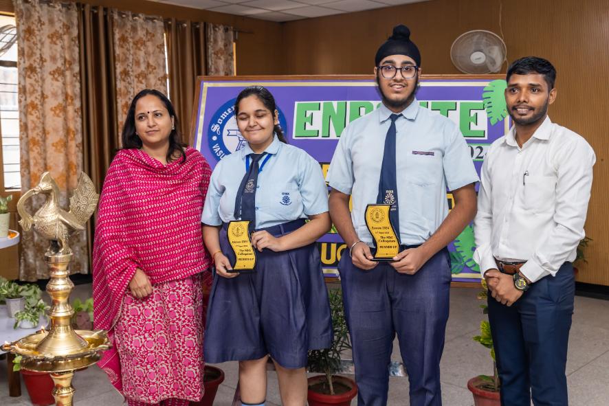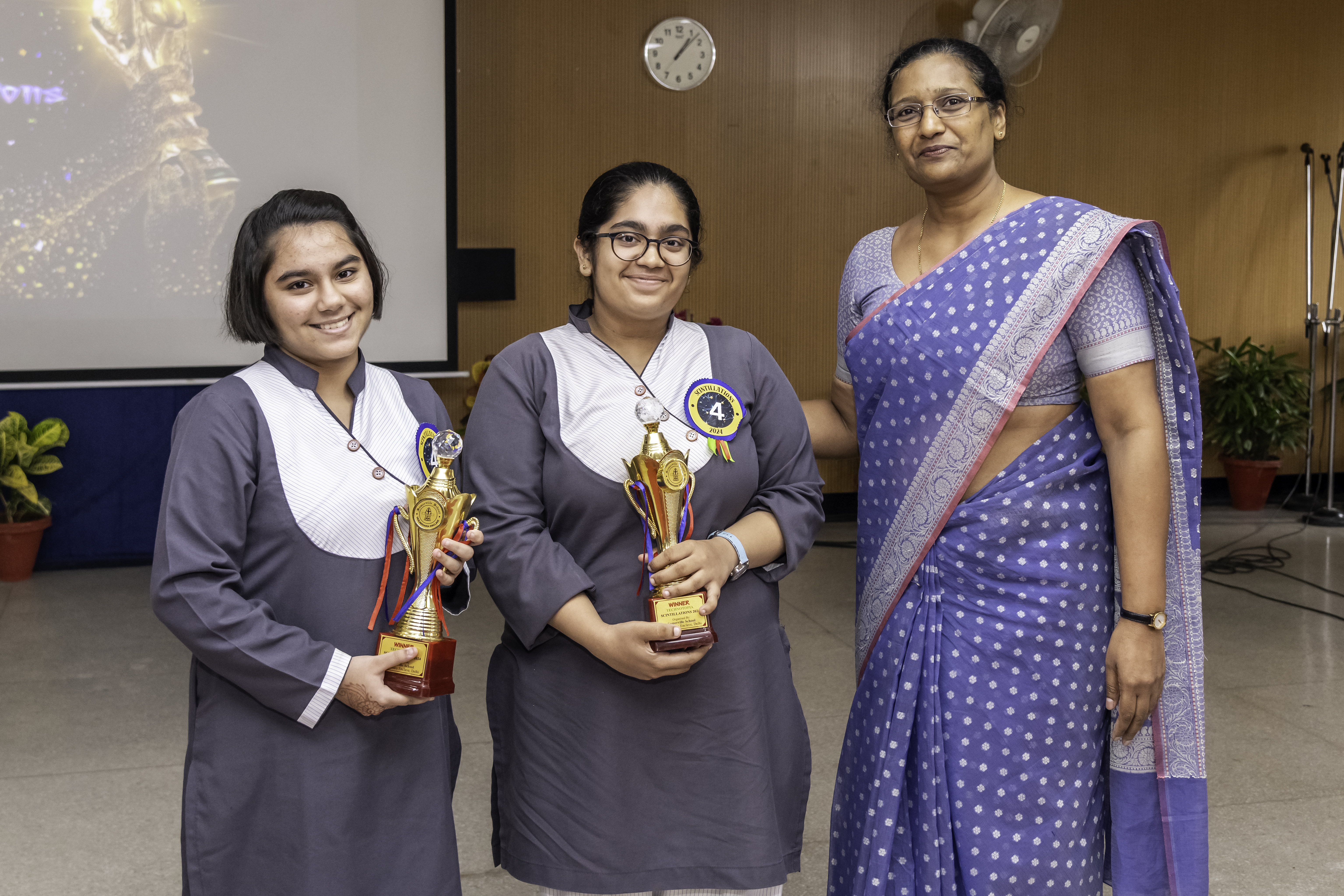 Dr. Sethi and Dr. Baxla shared valuable insights and appreciated the participants for undertaking research beyond their academic levels. The student audience also participated in a fun science quiz and won prizes. The Principal, Ms. Esther Mani, awarded trophies and certificates to the wining teams: