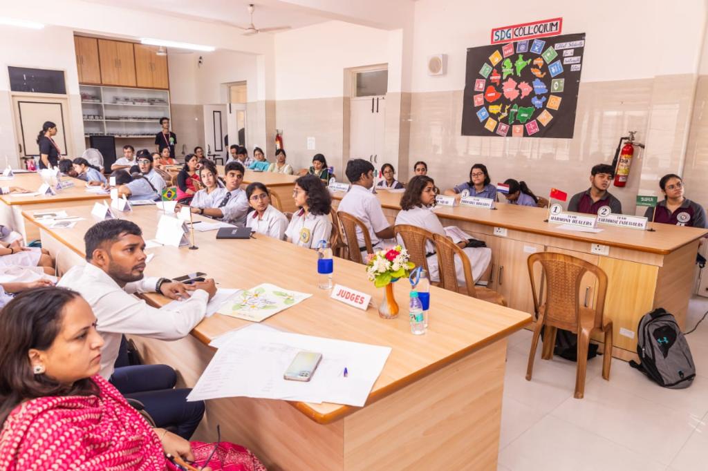The event focused on exploring the strides and initiatives towards achieving Sustainable Development Goals. The participating schools, representing the Ministry of Economic Affairs of a specific country, analyzed the initiatives taken by the country towards attaining the SDG goal allotted to them. They came up with proposals to ensure long-term benefits, thus maintaining or improving their HDI.