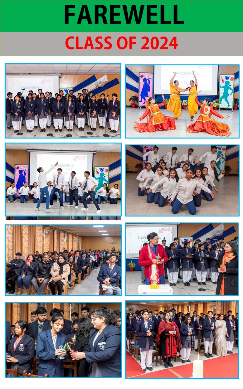The Farewell Ceremony for Class XII students was held on 27th January 2024 in the school auditorium in the presence of teachers, parents and students of Class XII. The programme commenced with a special assembly and the release of the Class of 2024 Yearbook by the Principal, Ms Esther Mani.