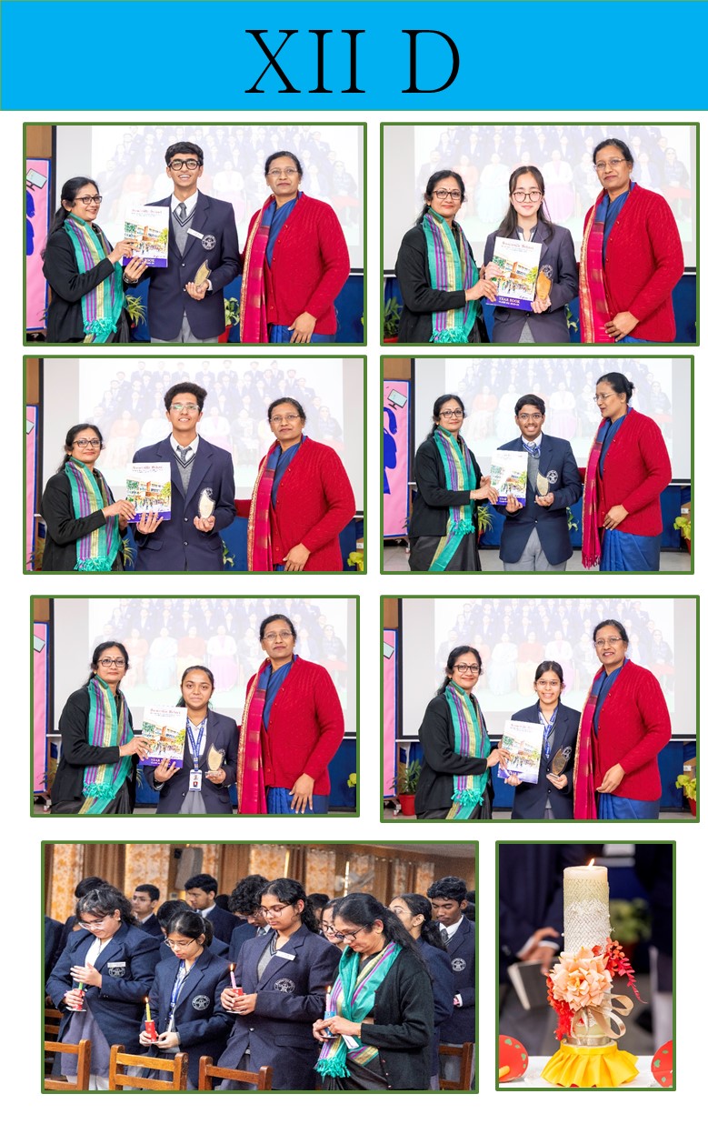 The programme concluded with the solemn ceremony of the lighting of candles accompanied by the choir’s mellifluous rendering of the inspiring hymn, ‘Carry your candle…Go light your world’. A special prayer of blessing was said for the students and parents. The programme ended with the singing of the school song and the day came to an emotional close for Class XII batch of 2023-2024.