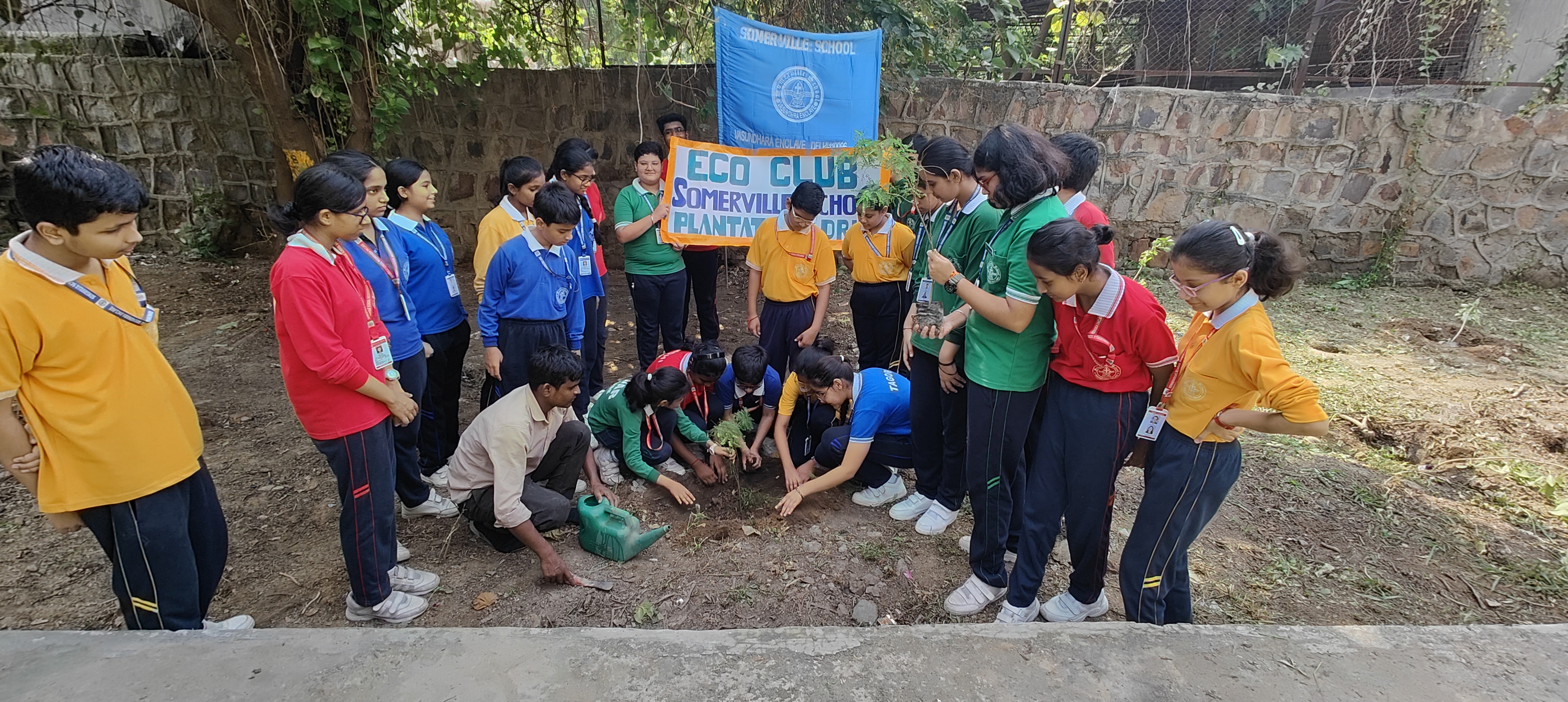 The Somerville School Eco Club, organized plantation drives,under the ‘EkPedMaakeNaam’ campaign during the months of September and October 2024focusing on the significance of tree plantation in combating climate change and enhancing biodiversity.