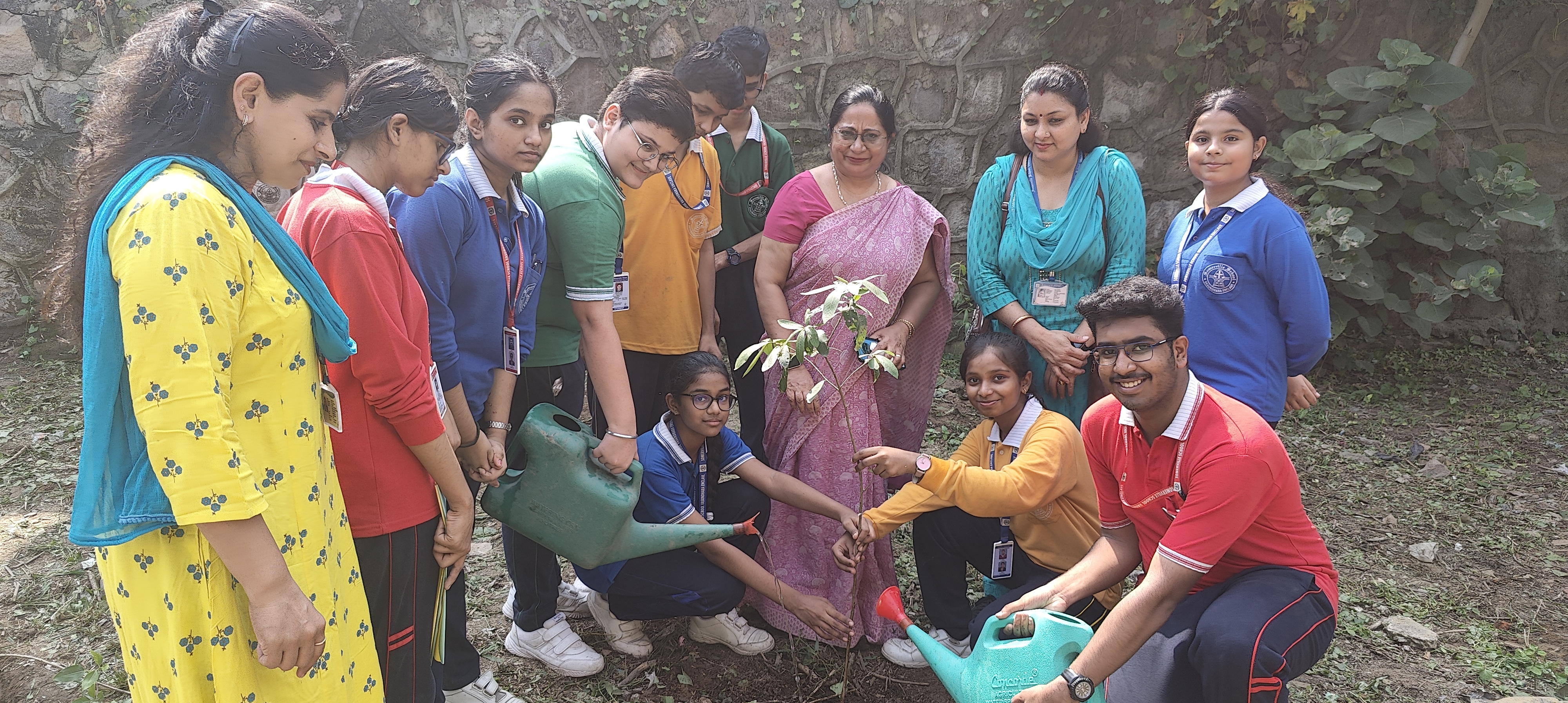 A plantation drive was organized in collaboration with EDMC in the MCD Parknear MOD Apartments on 30thSeptember 2024. A group oftwenty-five Eco Club members, two teachers and two gardeners of the schoolparticipated enthusiastically in the drive. The MCD Councillor,Mrs. MuneshDedha, and our school’s Vice Principal, Dr.Pratima Margaret Lall, planted saplingsalong with the students.
