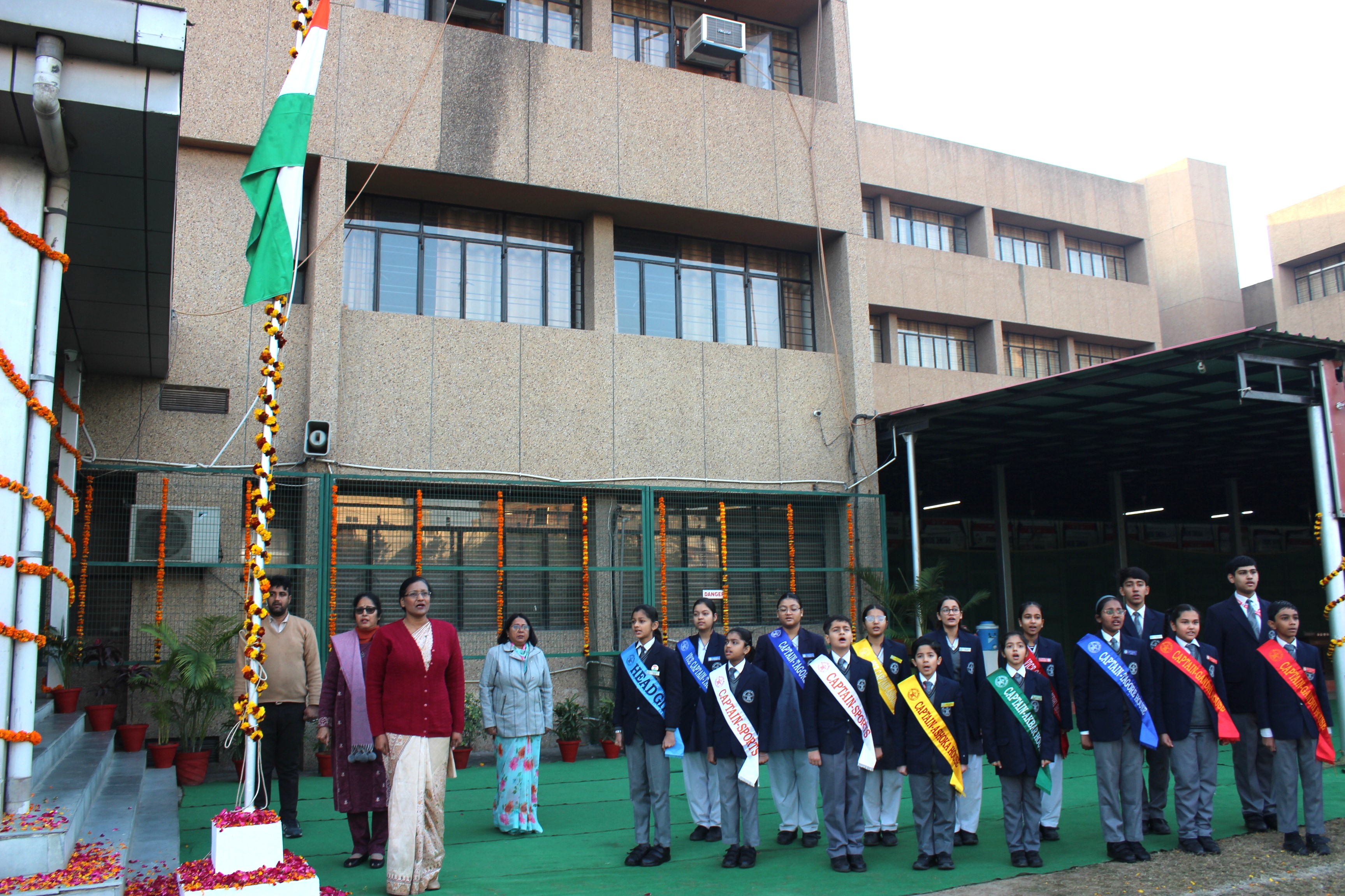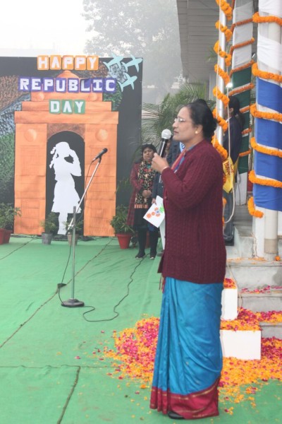 Ms. Suparna Bhattacharya, PGT History, read out an article published in Hindustan Times the same morning, recounting interesting facts and details about the first Republic Day parade conducted on 26 th January 1950. In her address, the Principal Ms. Esther Mani, appreciated the students for creating and presenting original content rather than quoting others. She emphasised on the importance of being original and encouraged students, teachers and parents to put all available resources to use in service of our country and to strive to achieve our full potential.