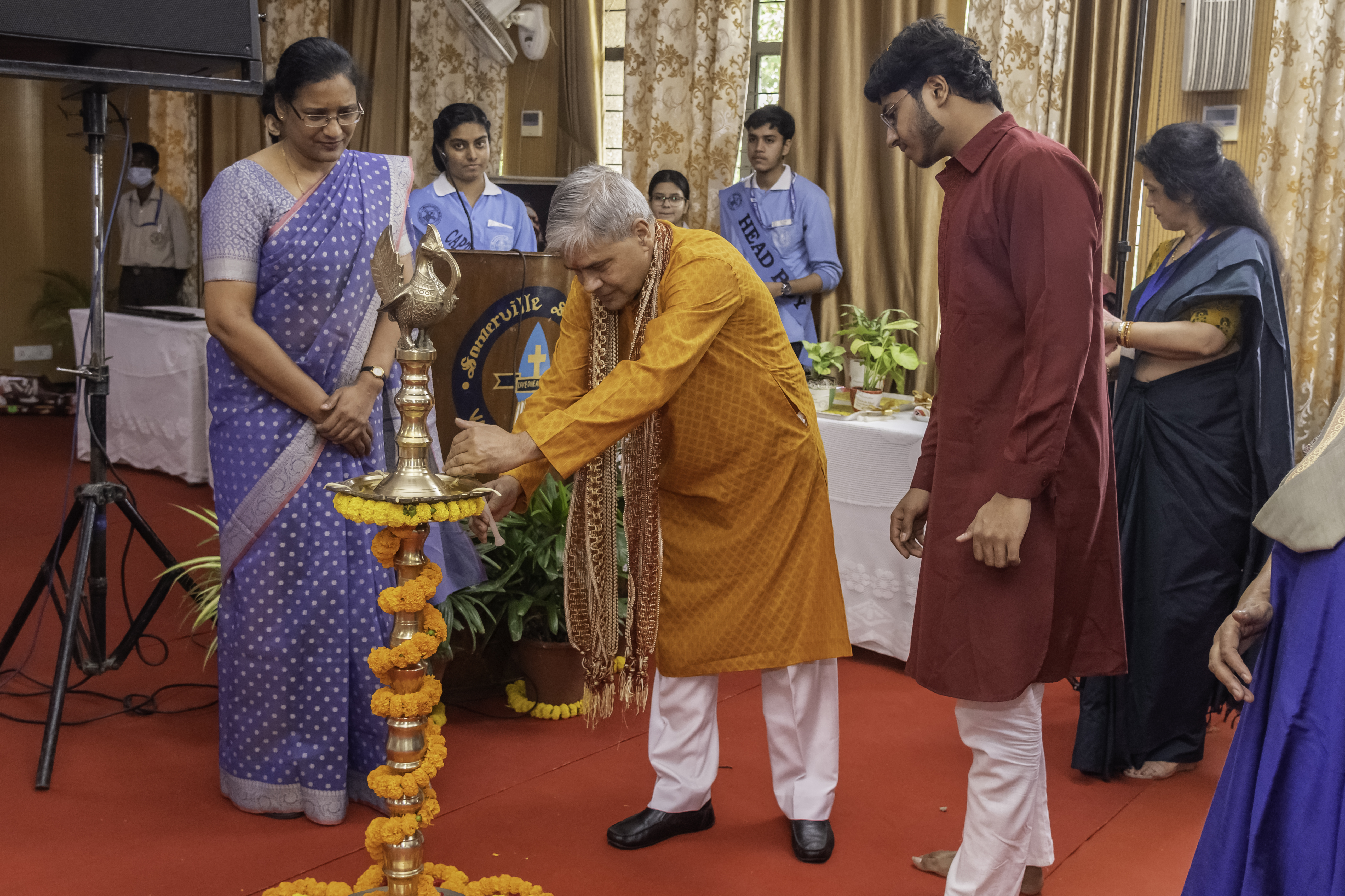 Somerville Ratna Awards were presented to five students of Class XII who had brought laurels to the school in sports and cultural activities: Juliet Treesa Jose and John Paul Jaison (Sports), Pranavi Jayanth (Craft and Culinary activities), Aditya Menon (Western Music) and Mouboni Majumdar (Indian Music). Shiv Shankar of Class X was commended for 100% attendance during the session 2023-24.