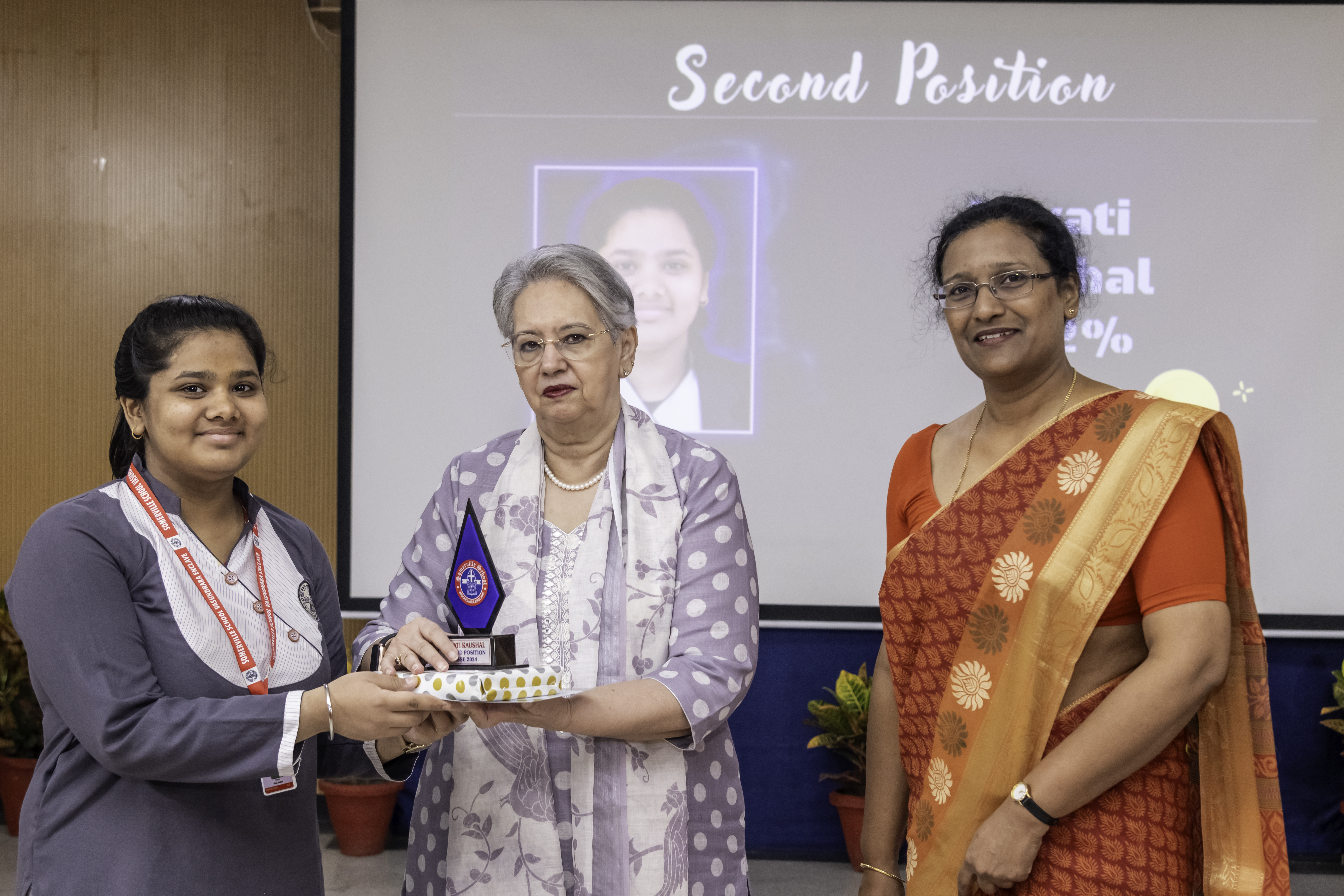 The event concluded with the prize distribution ceremony. The Principal, Ms. Esther Mani, and the judges presented trophies and certificates to the winners.