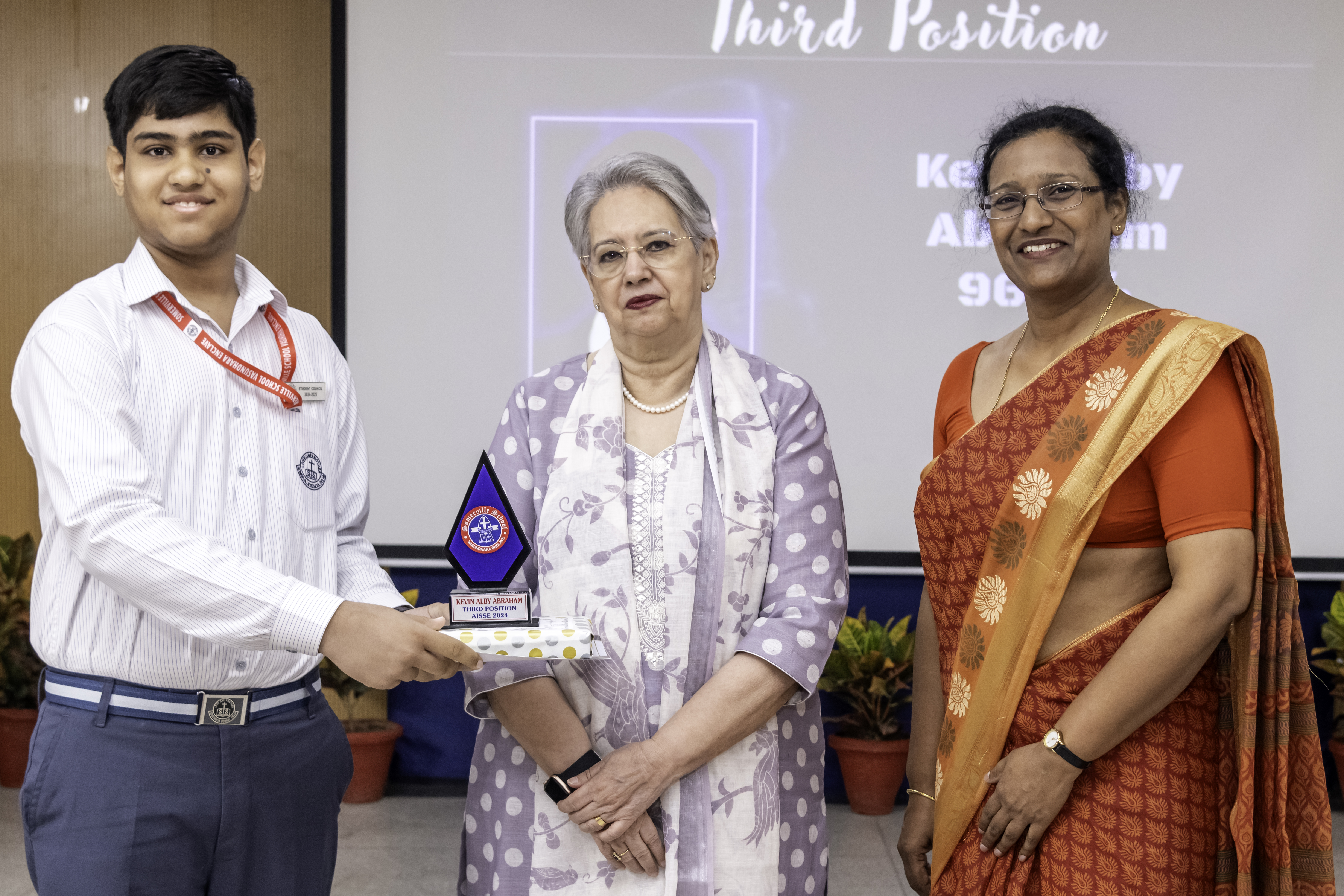 The Inspiring Student Award was presented to Anish Maurya of Class XII Science stream, for achieving excellent scores in AISSCE 2024 despite economic and social challenges. Anish was also gifted a laptop sponsored by Ms. Enid N. Lall and her organisation, ENL.