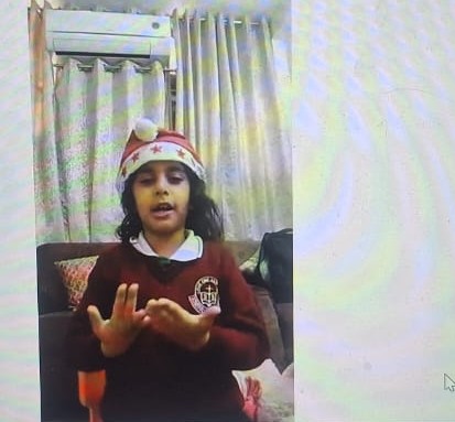 The students of Pre School and Pre Primary celebrated the Christmas Programme online on Friday, 19th December 2025, from 12:15 p.m. to 1:00 p.m., after their regular virtual classes. Some children wore Santa caps and participated in an online presentation. The programme began with a short prayer, Bible reading, and the Lord’s Prayer. The students then sang Christmas carols and watched a Nativity video. They also took part in singing, dancing, and speaking short lines related to Christmas.