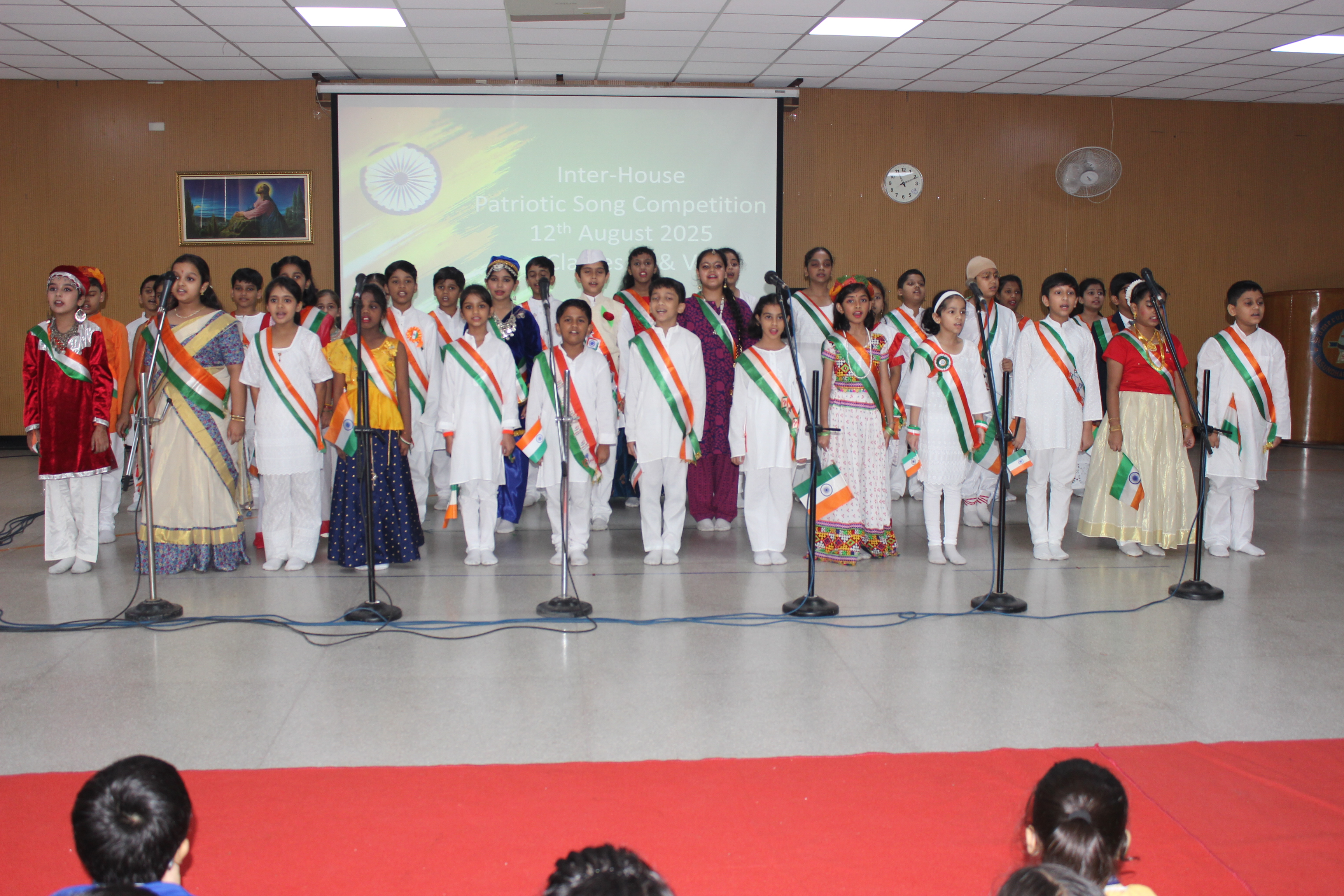 Inter House Folk Song Competition was held on 11th August, 2023 with the theme, Folk Fusion. There were 30-35 students in each team from Classes IV and V. The result was –
