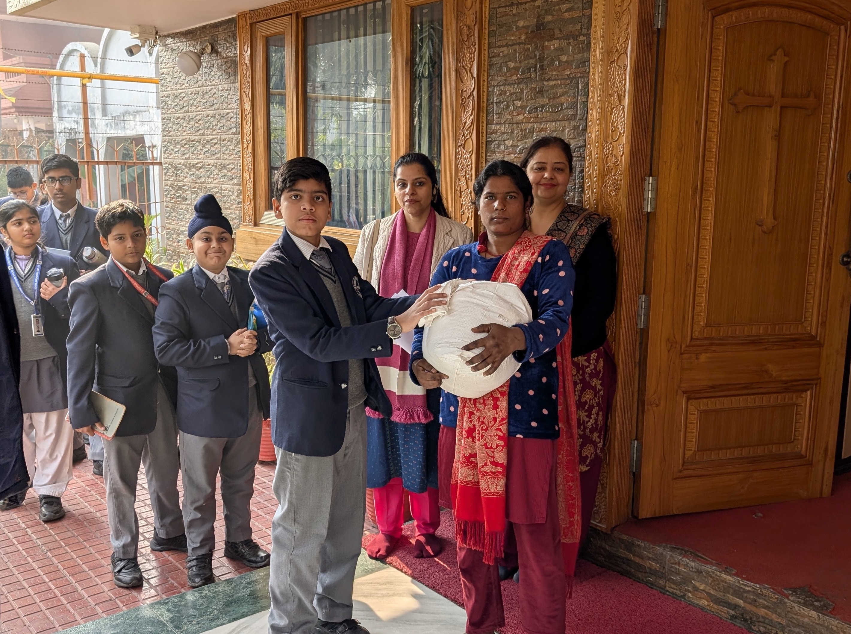 During the visit, the students conducted a brief assembly, sang carols, and interacted warmly with the children and members of the staff. They also presented the donated items to the charity home.