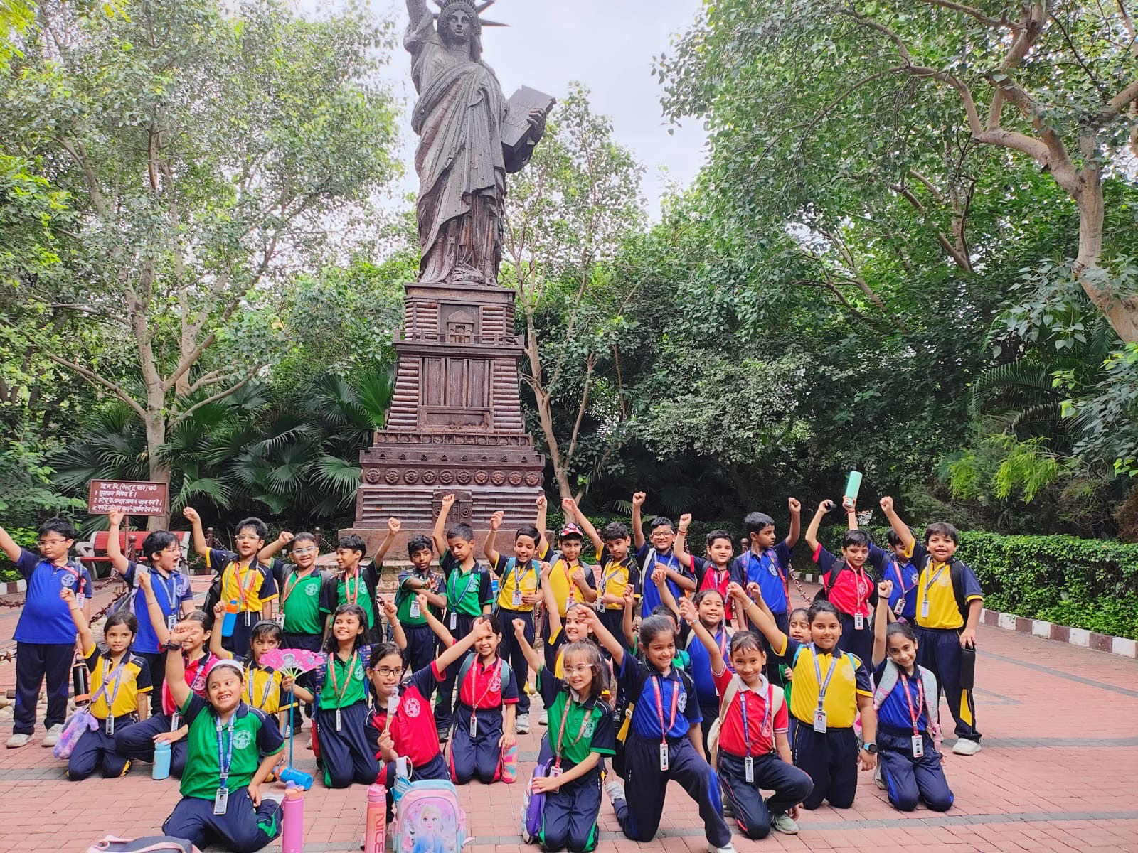 162 students of Class III accompanied by their teachers went on an educational trip to Waste to Wonder Park, located at Sarai Kale Khan on Friday, 1st August 2025. The park features replicas of iconic landmarks such as the Statue of Liberty, Taj Mahal, etc. all crafted from waste material. This innovative display highlights how discarded materials can be transformed into valuable resources, encouraging students to embrace eco-friendly practices.