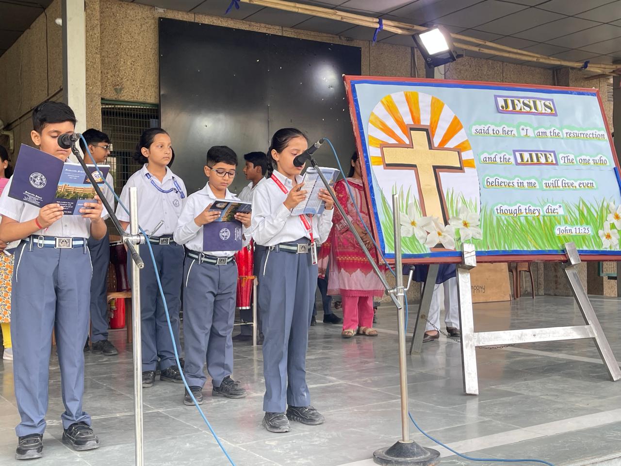 On 10th April 2023, a special assembly was conducted on account of Easter. The assembly began with a special hymn, “Because He lives” presented by the school choir. This was followed by a special prayer and Scripture reading from Luke 24:6-7.