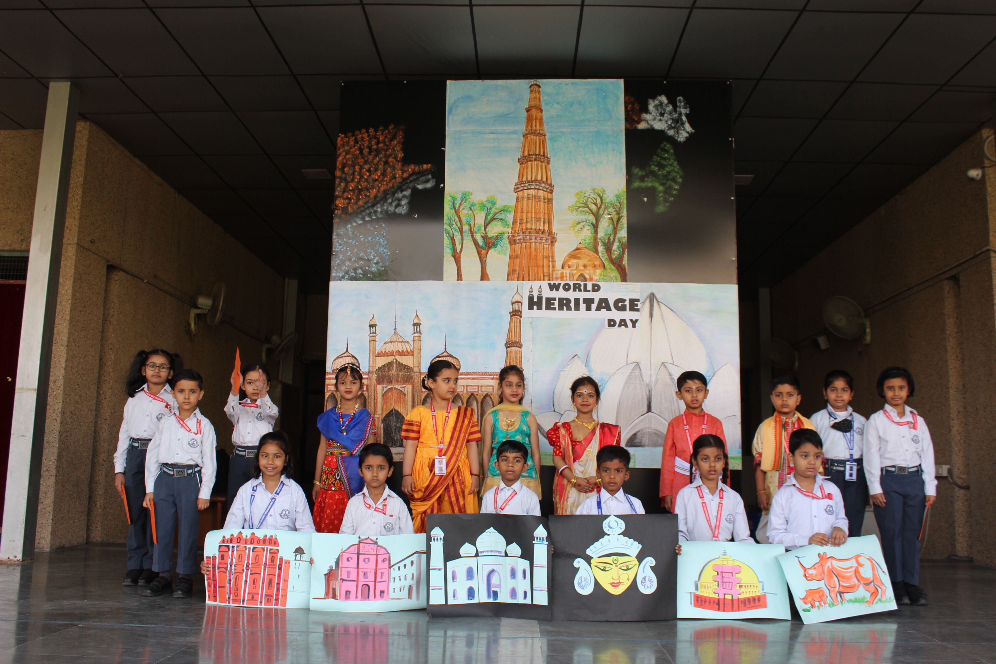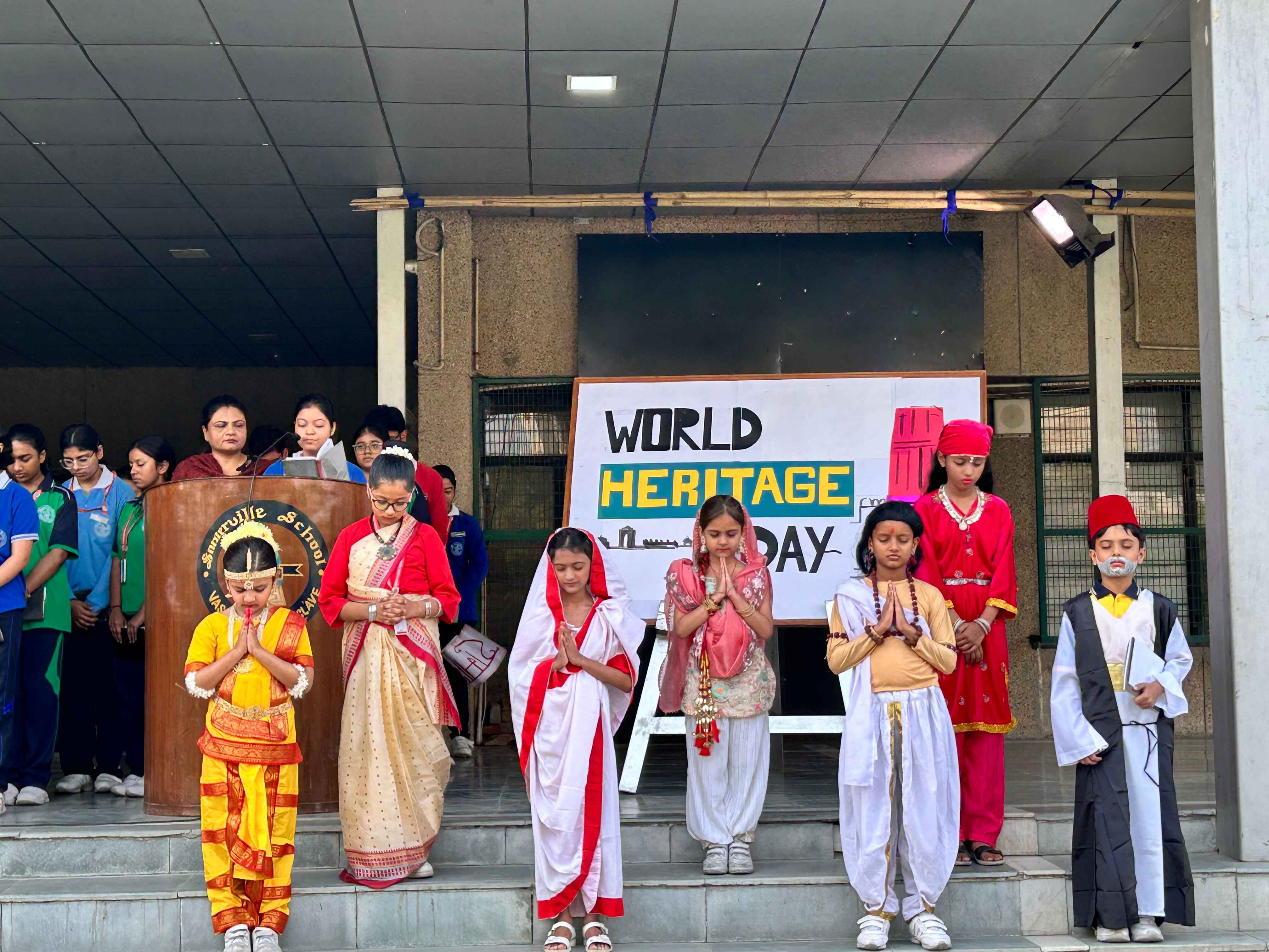 As World Heritage Day is observed annually on April 18 th , the students of Class II conducted the Heritage Day Assembly on 18 th April 2024. They explained why it is observed and also showed different heritage sites and intangible cultural heritage declared by UNESCO through posters. Students came dressed in the state costumes of the states where the heritage site exists.
