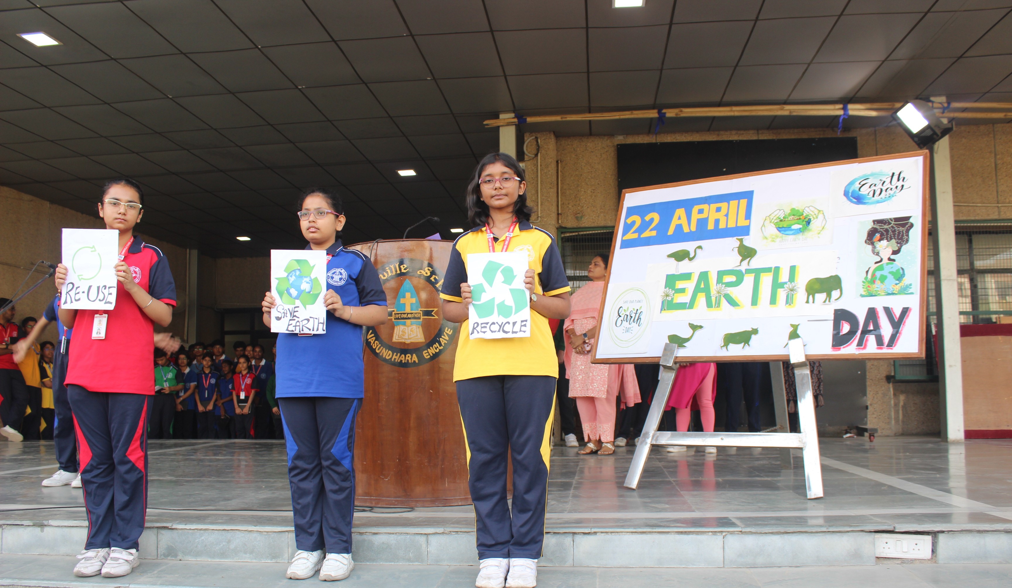 A special assembly was conducted on the occasion of Earth Day on 21st April to demonstrate the concern for the declining health of the Earth.