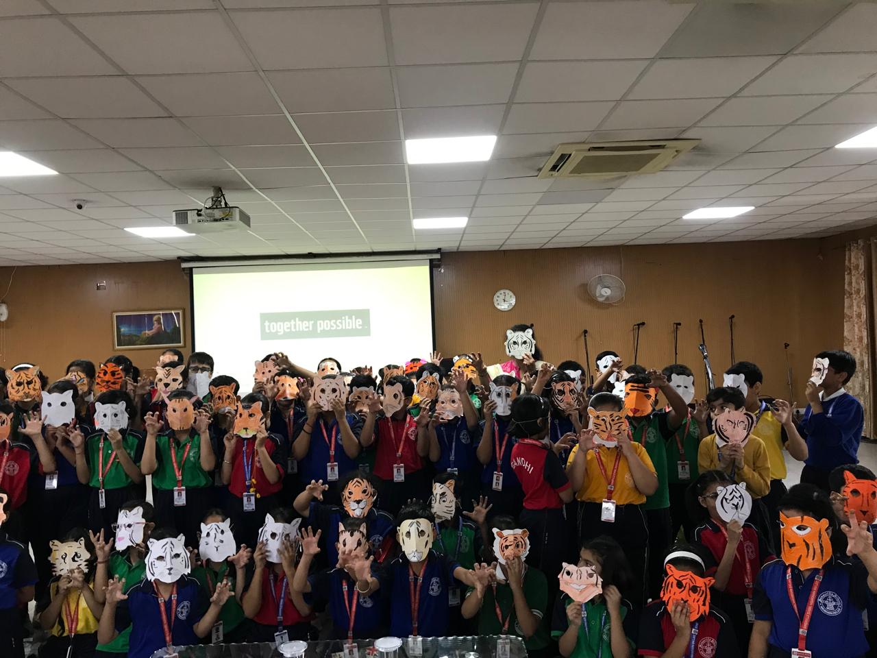 Several schools participated in the workshop. Students were divided into four groups and encouraged to participate in many interesting activities. They watched an informative video about animals and later, attempted a worksheet that tested their knowledge about physical features of different animals.