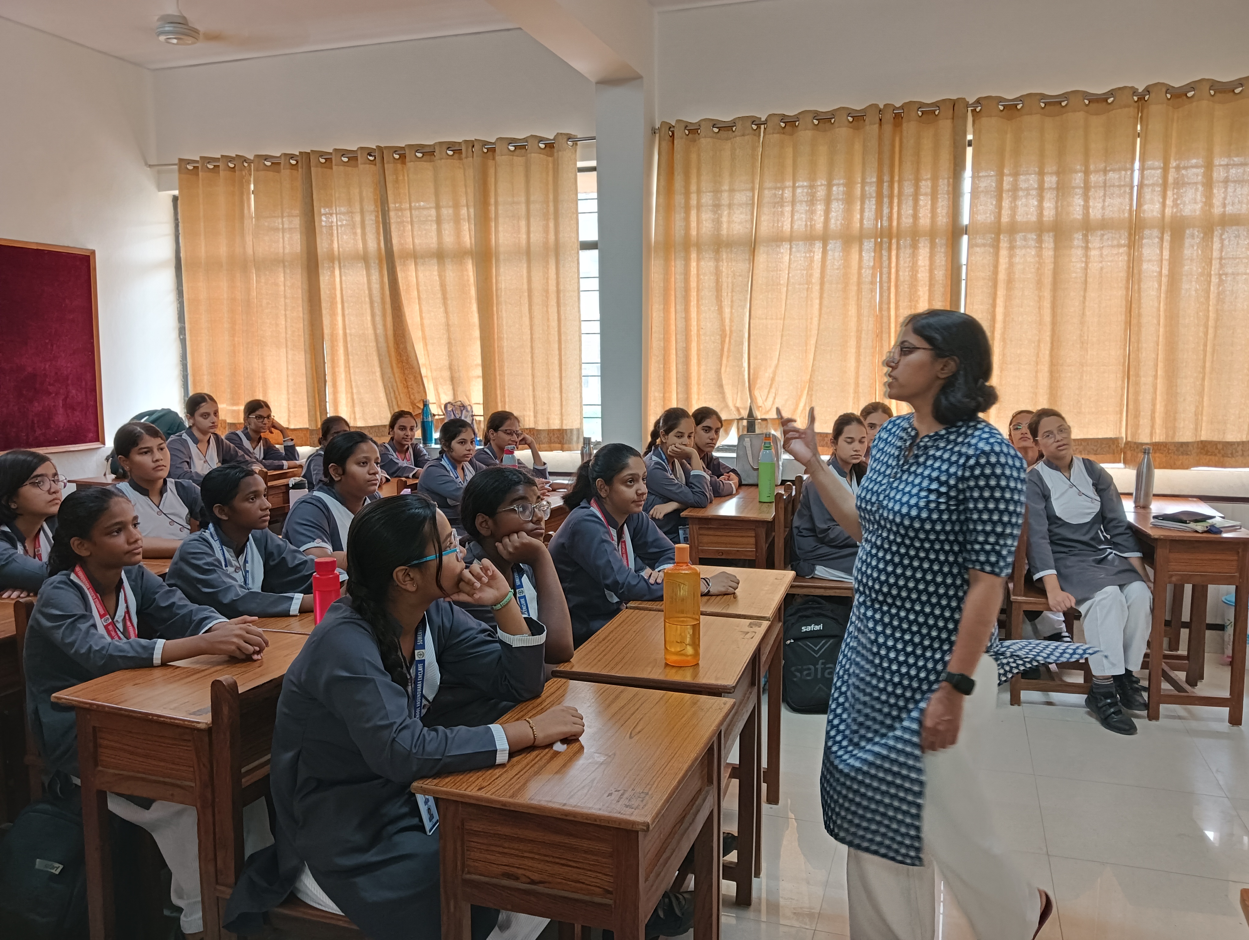 Mrs. Jyotsna informed the students about different career options suitable for all three streams and new age careers that provide ample opportunities to grow. She gave a detailed explanation about the career options that hold a lot of scope, both in India and abroad. She also advised students to keep their interest and aptitude in mind when choosing a career as it would ensure success in the future.