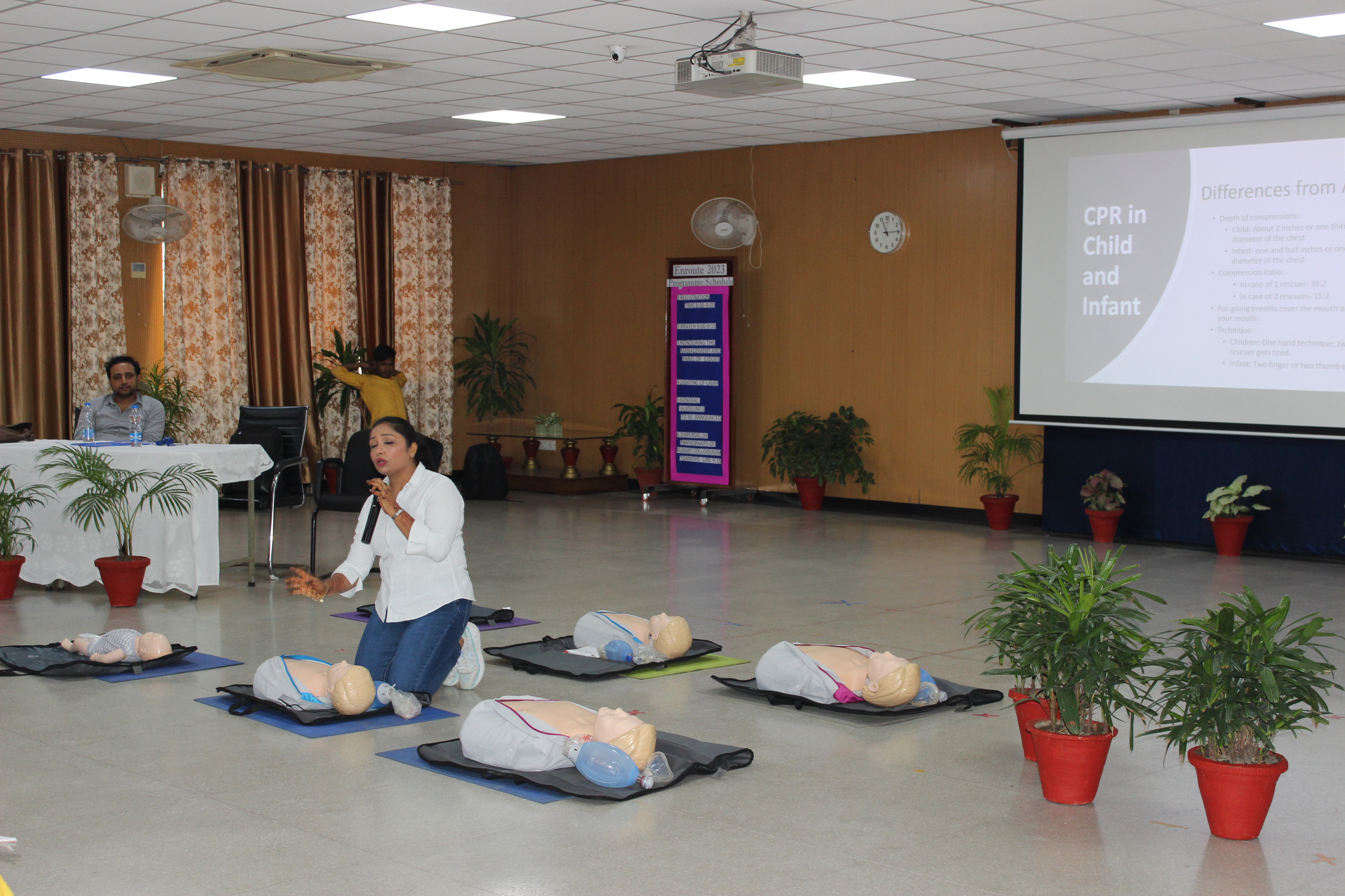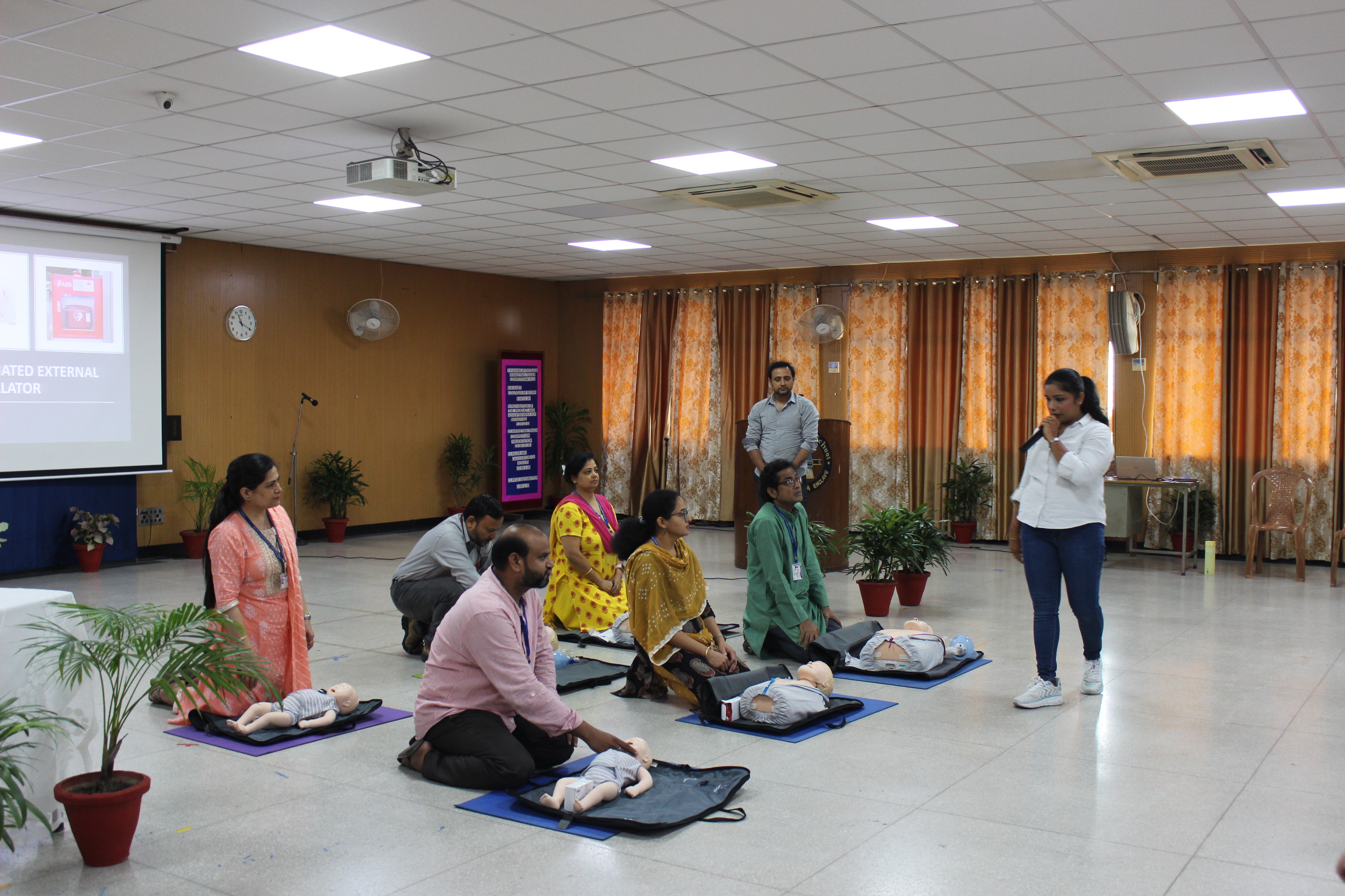 The session focused on recognising a medical emergency and learning to differentiate between a heart attack and cardiac arrest. The resource person. Ms. Shracha Agarwal, demonstrated the correct technique to perform Cardiopulmonary Resuscitation (CPR) on infants, young children and adults. The participants also learnt about Automated External Defibrillator (AED), a portable device that can be used to analyse the heart’s rhythm and deliver an electrical shock, if required.