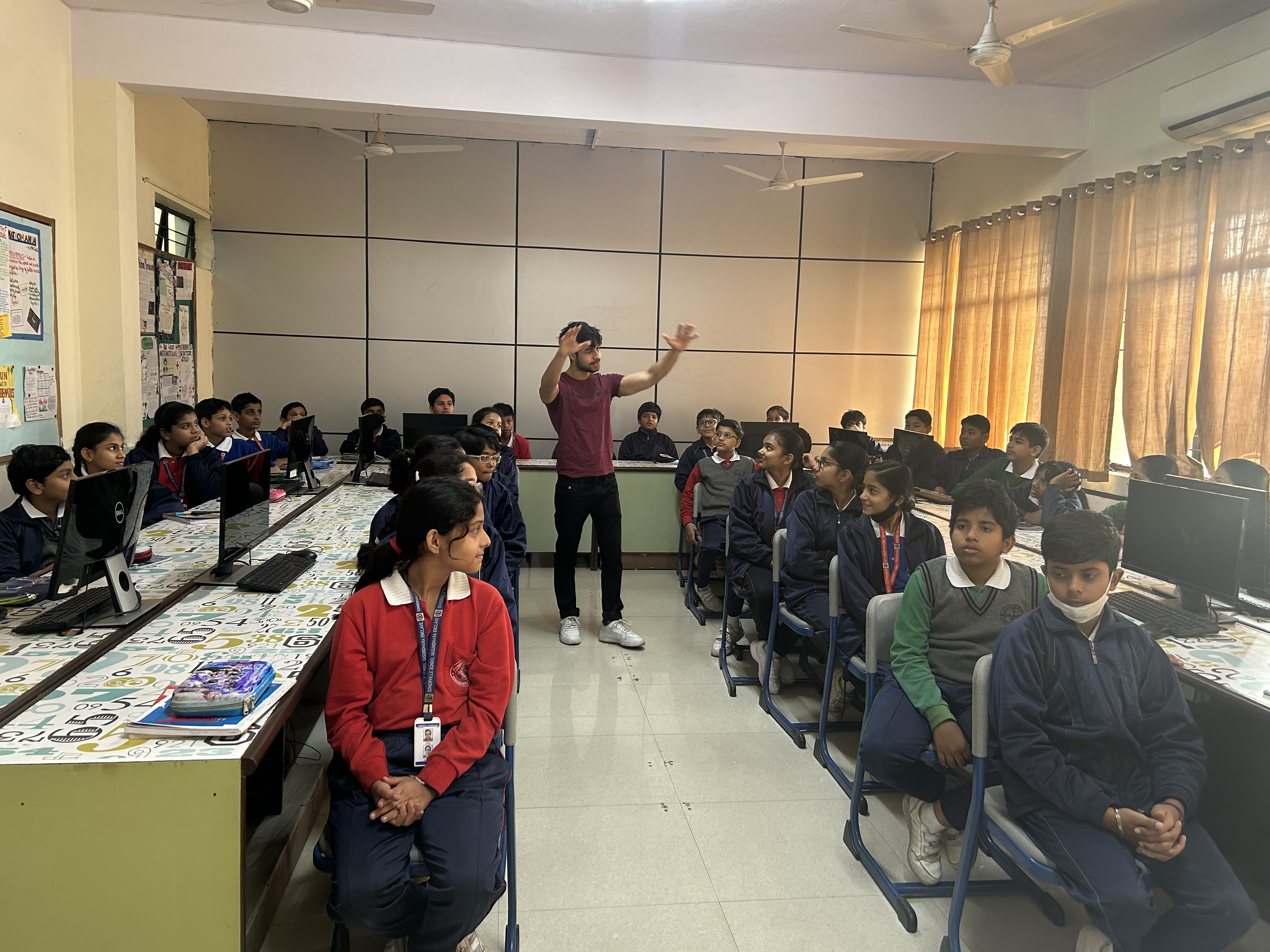A workshop on Improving Speaking Skills in German was conducted on 19th December 2023 by Mr. Palash Bhattachariya, an alumnus of our school, who is currently pursuing M.Sc. in Computational Mathematics from University of Passau, Bavaria, Germany. The aim of the workshop was to help students develop fluency in spoken German to maximise the benefits of educational opportunities in Germany. The session was attended by students of Classes V, VI and VII, who are learning German as an additional subject.