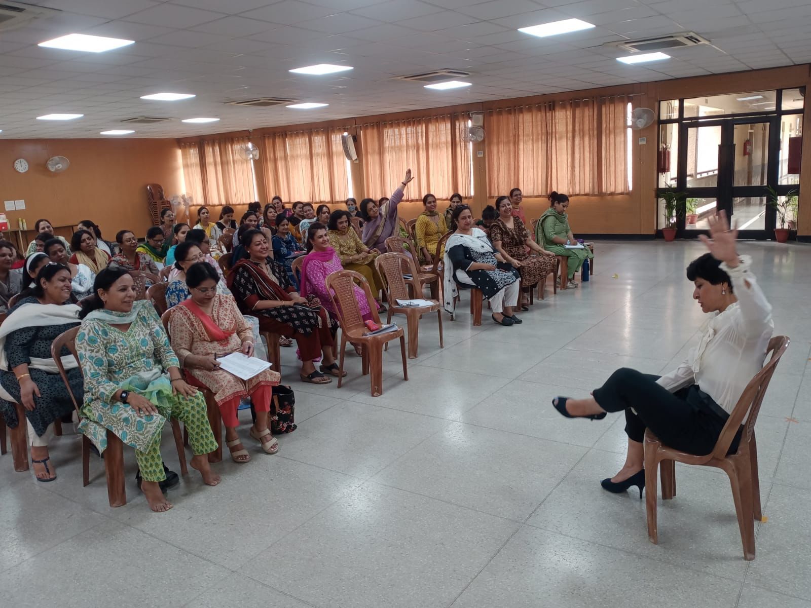 The resource person emphasized on the importance of self-care and fitness based on the kind of work and tasks performed by teachers. She demonstrated a lot of exercises that can be incorporated in daily routines for a healthy lifestyle. She also addressed all the queries that the teachers had with respect to individual health issues and diet. The workshop was very informative and engaging.