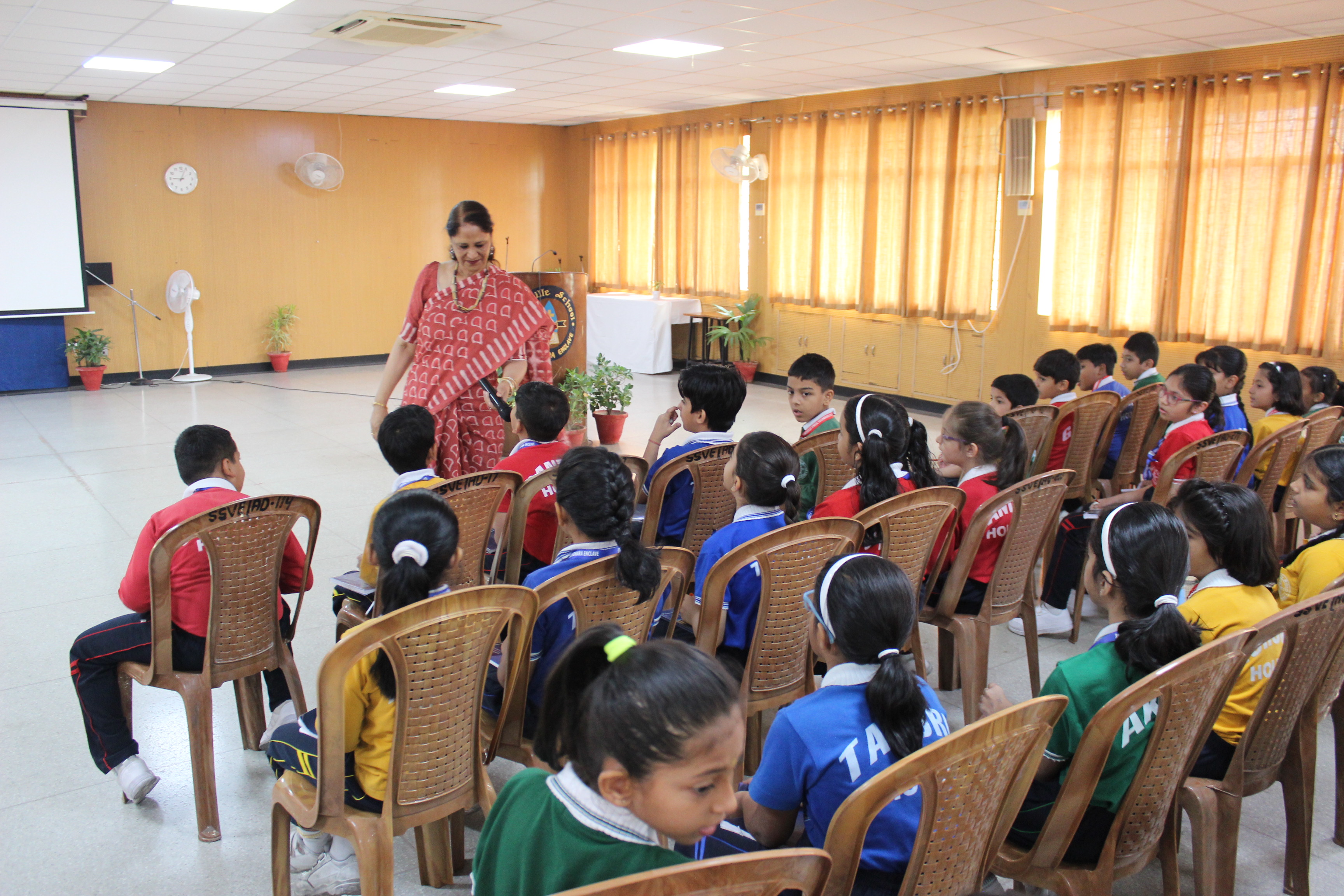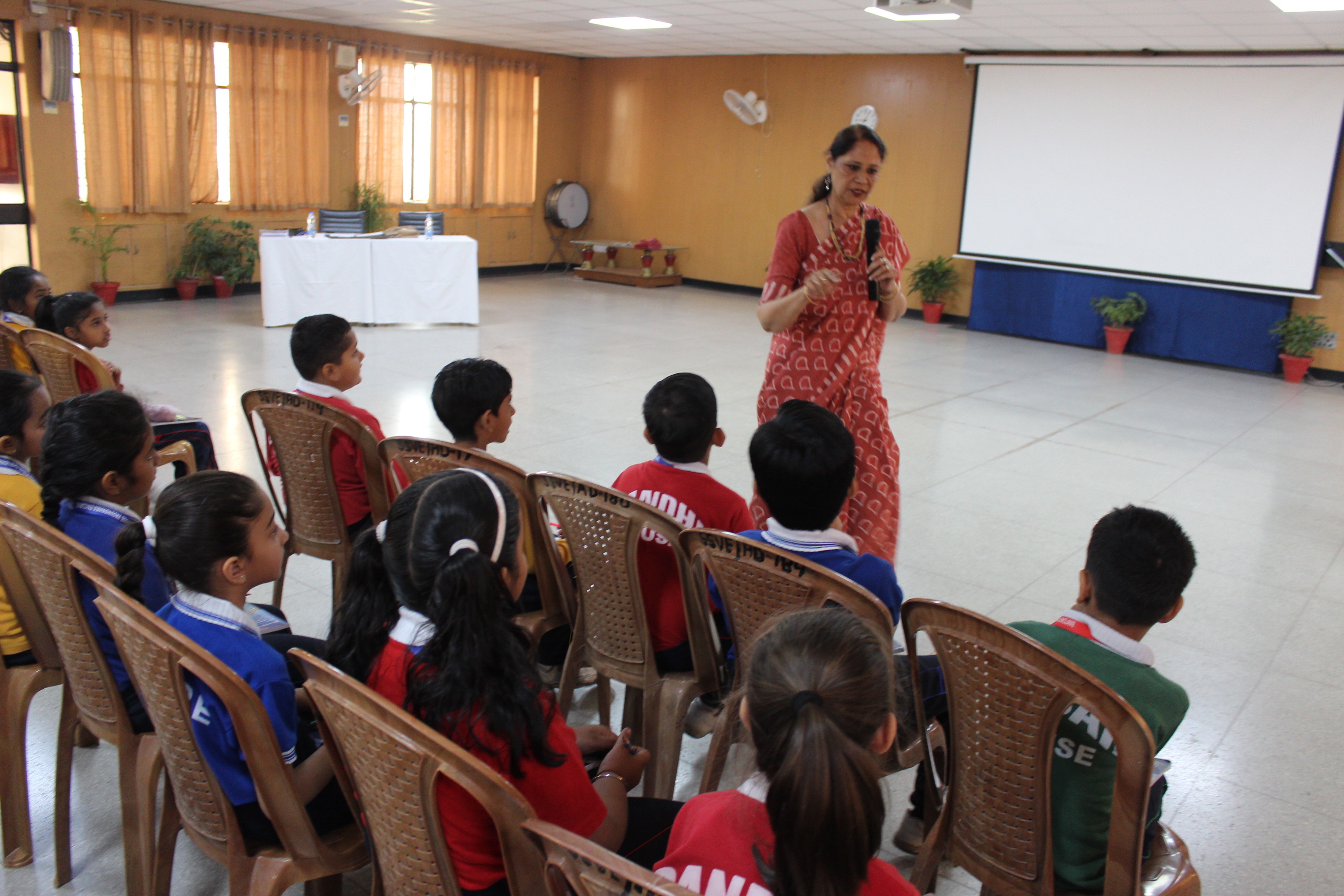 students of Classes IV and V. She had an interactive session with the students wherein she